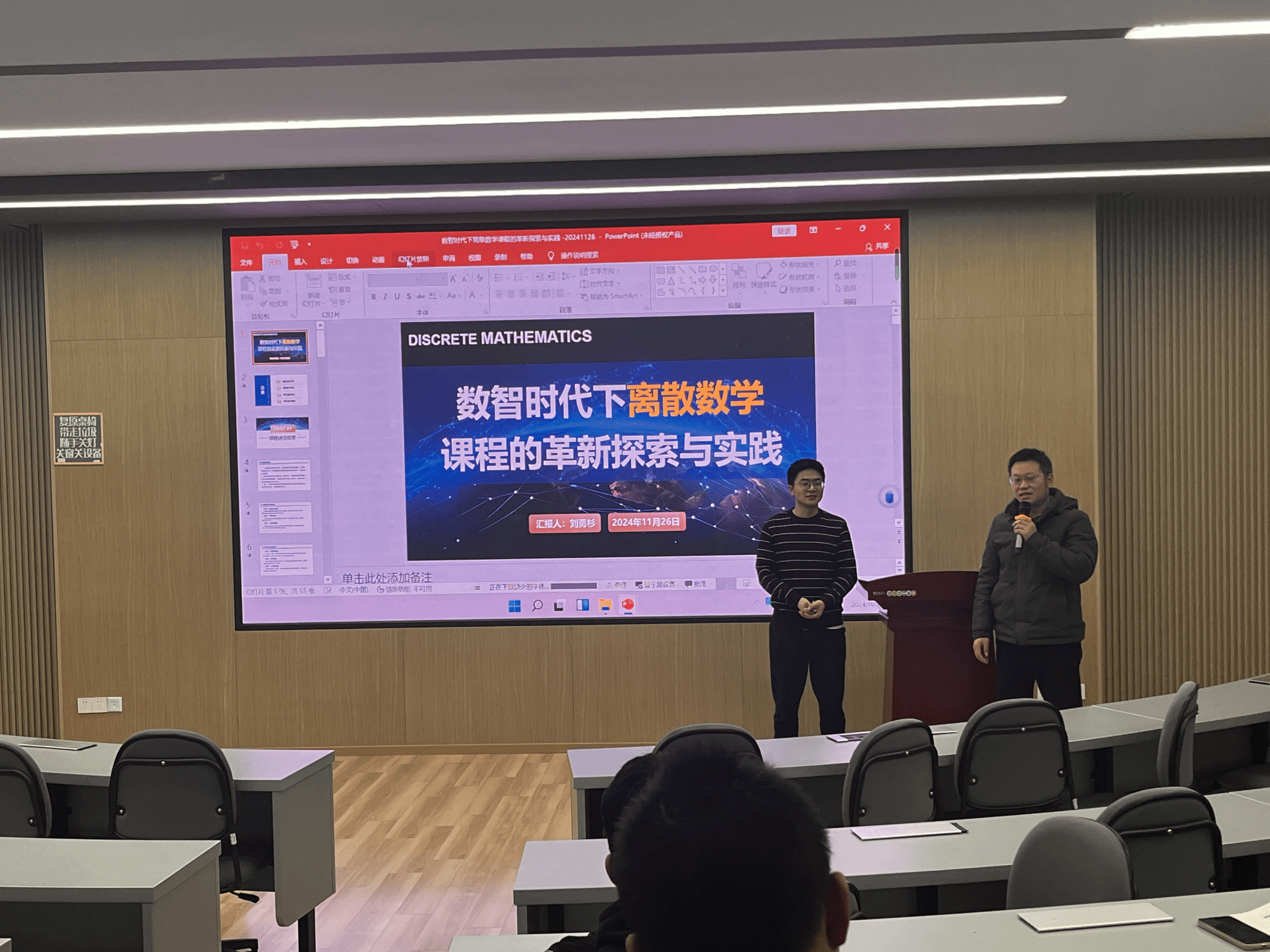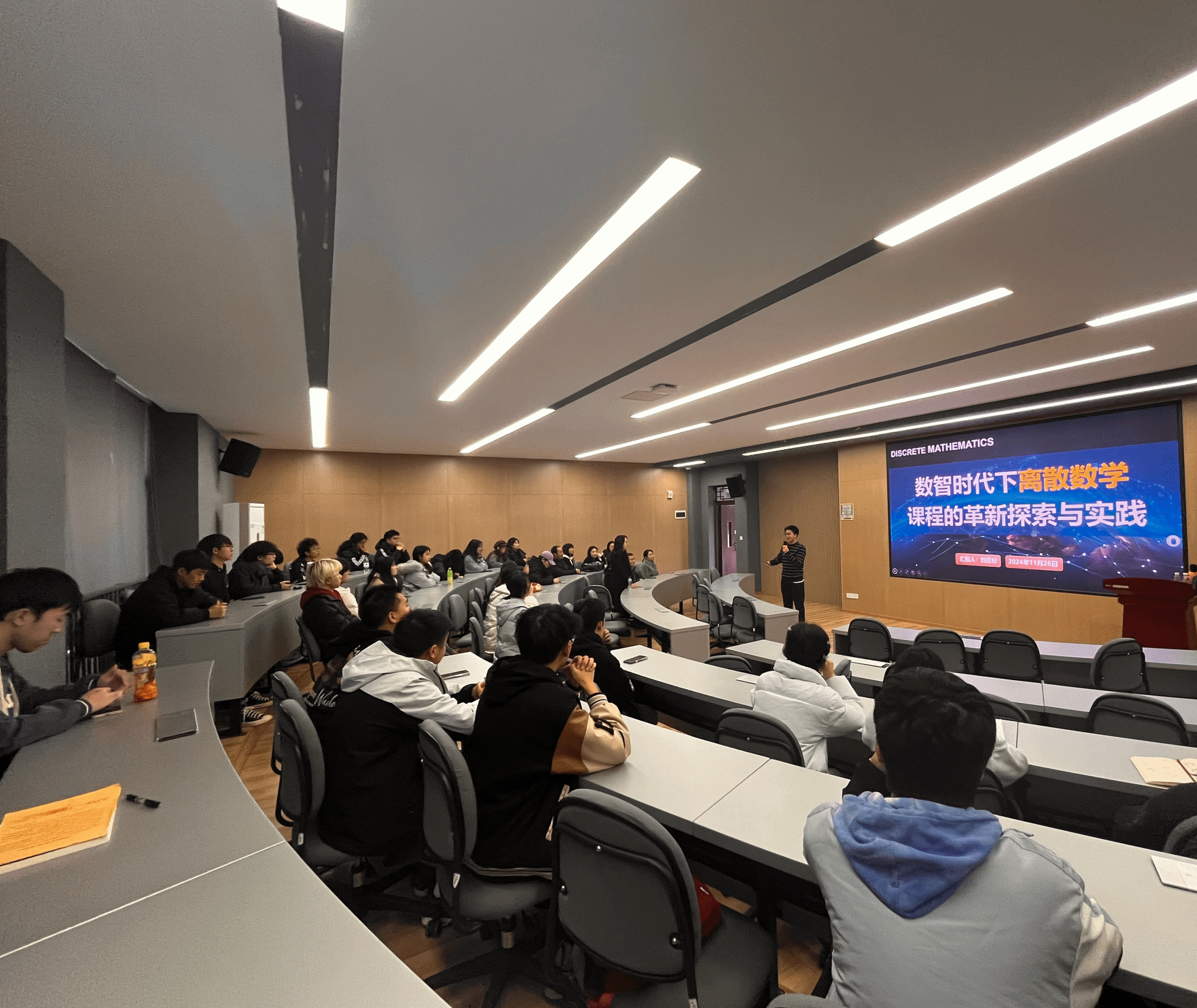 在数智时代蓬勃发展的大背景下,离散数学作为众多前沿技术的核心理论基础,其教学的革新对于培养适应时代需求的创新型人才至关重要。为了让大数据学院的师生深入了解离散数学课程在新时代下的发展趋势、面临的挑战及应对策略,提升学院整体教学水平,推动学科建设与人才培养质量的提升,11月27日下午3点,重庆移通学院大数据学院于智者楼304成功举办了一场关于离散数学课程革新的精彩讲座。本次讲座特别邀请到重庆邮电大学的刘勇杉教授主讲,吸引了大数据学院众多专任教师和学生的积极参与,由大数据学院教学副院长吕云山主持。