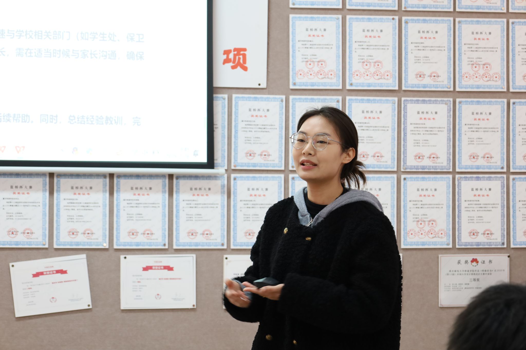 辅导员要学会去打造属于自己的个人IP和品牌特色,同时也是在传递给我们一些人生态度,其实任何事情只要尽全力,对自己的工作有要求,有态度,保持乐观,经历比结果重要。她希望大家理解我们集团办学 的理念,同时也能够从董事长的这些讲话中吸取能量,提升自己。