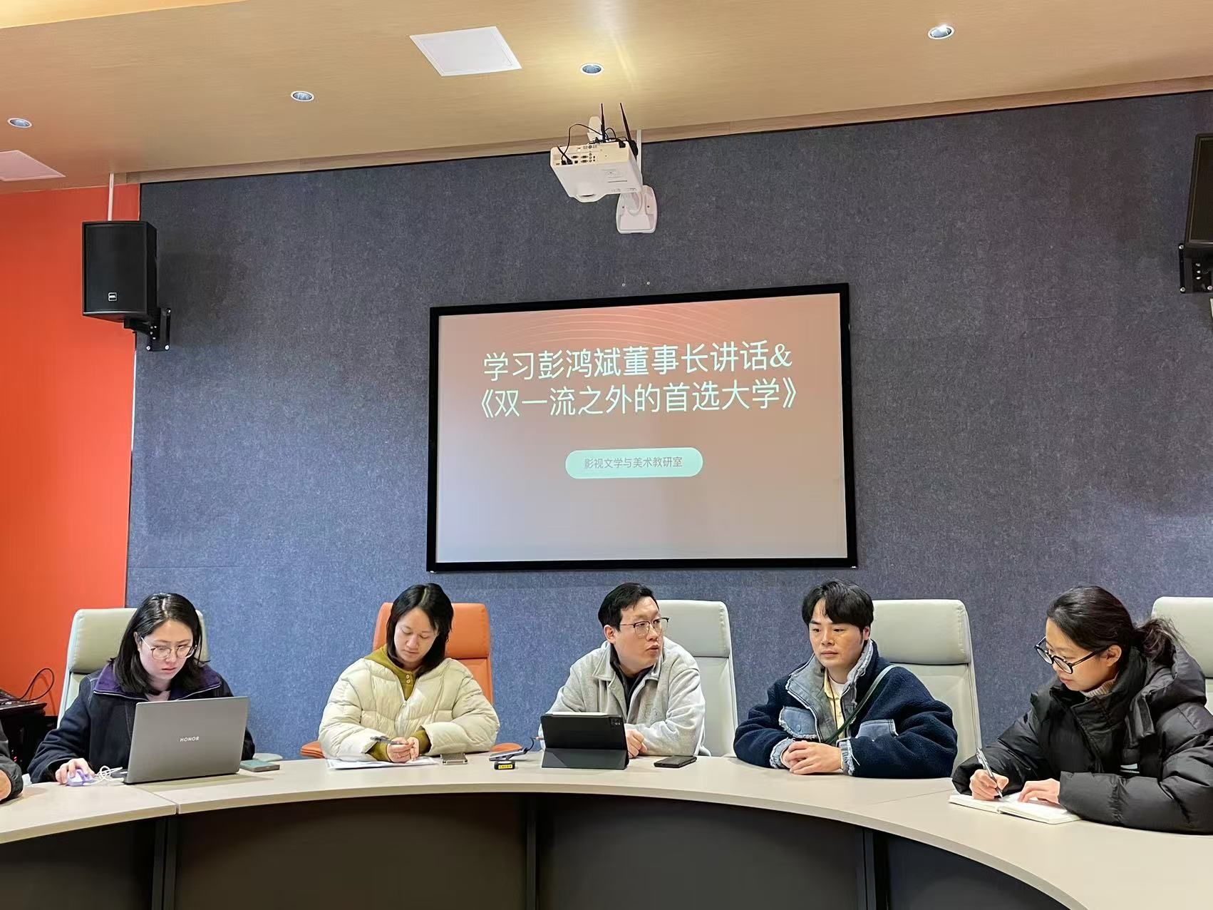 为深入学习贯彻彭鸿斌董事长讲话精神,3月4日,影视文学与美术教研室在古剑书院龙泉会议室召开专题学习会。会议由教研室主任杨帆主持,全体教师共同学习了董事长讲话,并就《双一流之外的首选大学》一书进行了深入研讨。在《话成长,赴未来》一章中,董事长明确指出:“我校教育的核心要义不仅在于培养学生的专业技能(Professional),更着重于塑造其健全人格(Personal)。”这一论述深刻阐释了教育的双重使命,彰显了完美教育理念的前瞻性与先进性。高等教育不应局限于知识传授的单一维度,而应致力于引导学生拓展生命视野、探索人生价值,在平凡生活中追寻诗意栖居,最终实现自我价值的升华。这种既立足现实需求又超越功利导向的教育理念,为影视文学与美术教研室的教育教学工作提供了重要的理论指引和实践启示。