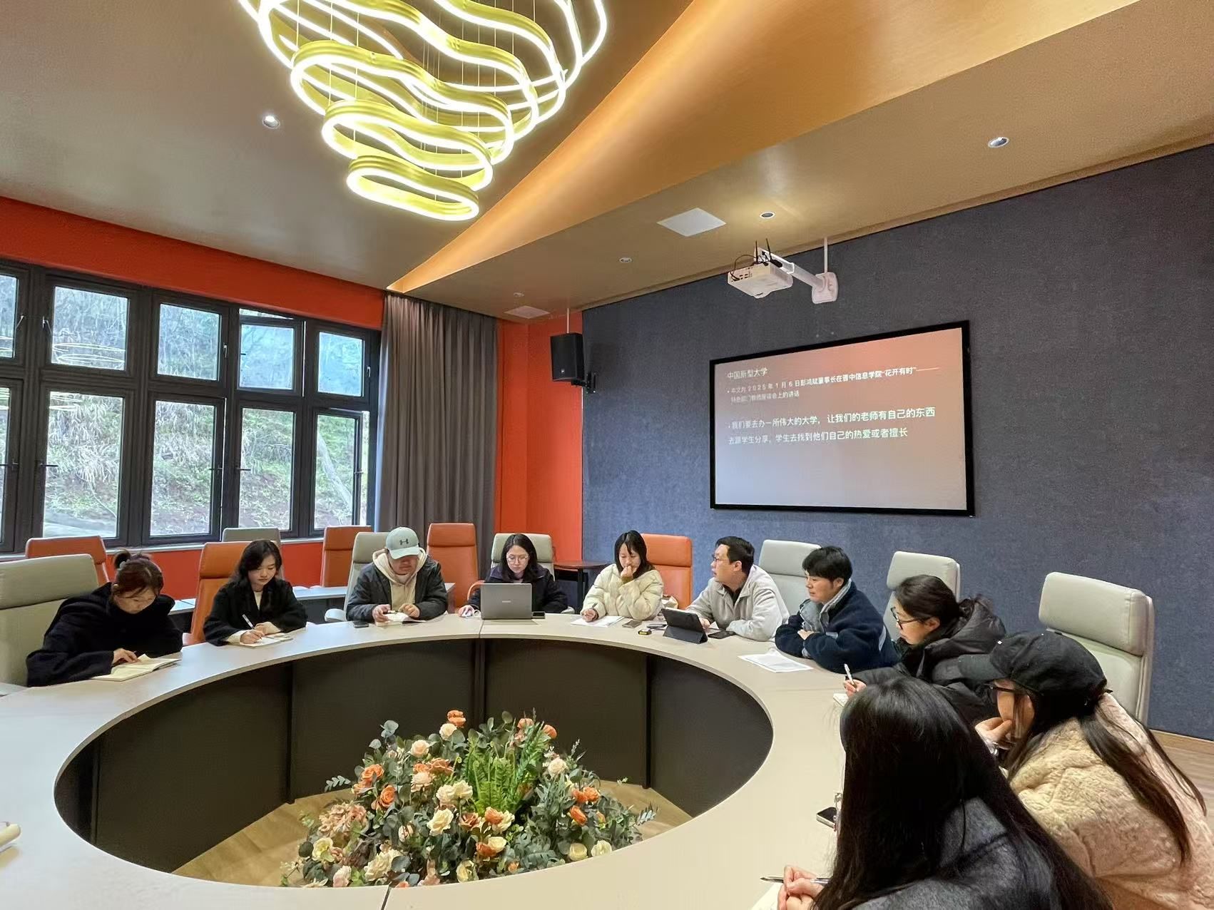 戏剧影视学院学生工作办公室于2025年2月28日在古剑书院105棠溪·砚友有梗屋组织全体辅导员集中研读了彭鸿斌董事长《那些花儿照样绽放》和《教育理念:卷到极致不如不同》两篇重要讲话。学习过程中,辅导员老师们分别就自学《双一流之外的首选大学》一书发表学习心得。邓艳老师讲到“保持好的心态,花终会开,人生也就顺了。”周江琴老师结合个人的工作风格,反思当前工作状态,她表示不要内耗于那些已经发生的的事情,眼光应该放长远一点,去实现更 远的目标。”林倩老师借此机会分享自己所带的一个内向、青涩的学生主动的竞选了军训的连队负责人,学生在过去完满教育和辅导员给予的关怀和陪伴下所发生的改变和成长。当学生在面对一些困难时,还能够说出“我会”“我可以”“我想”,这就是完满教育的意义,也是我们需要去建设双一流之外的首选大学所需要坚守的,作为辅导员用心用情守好一份责任田,尽力去帮助学生成长。廖炳屹老师分享到,站在全国大学生序列中,移通学子在科研方面很难超越双一流高校的学生,虽然我们无法在这条路上走不通,那我们在另外一条道路上也能一路长虹。不管是老师还是和学生,只要把一件事做到极致,那么在这一方面我们都是成功的。林西康老师提到,我们要遵从学生的个性选择,根据学生个性能力,去进行因材施教,专注去办学生喜欢的活动让学生在创造活动中增强他们的思维逻辑、锻炼自身能力。
