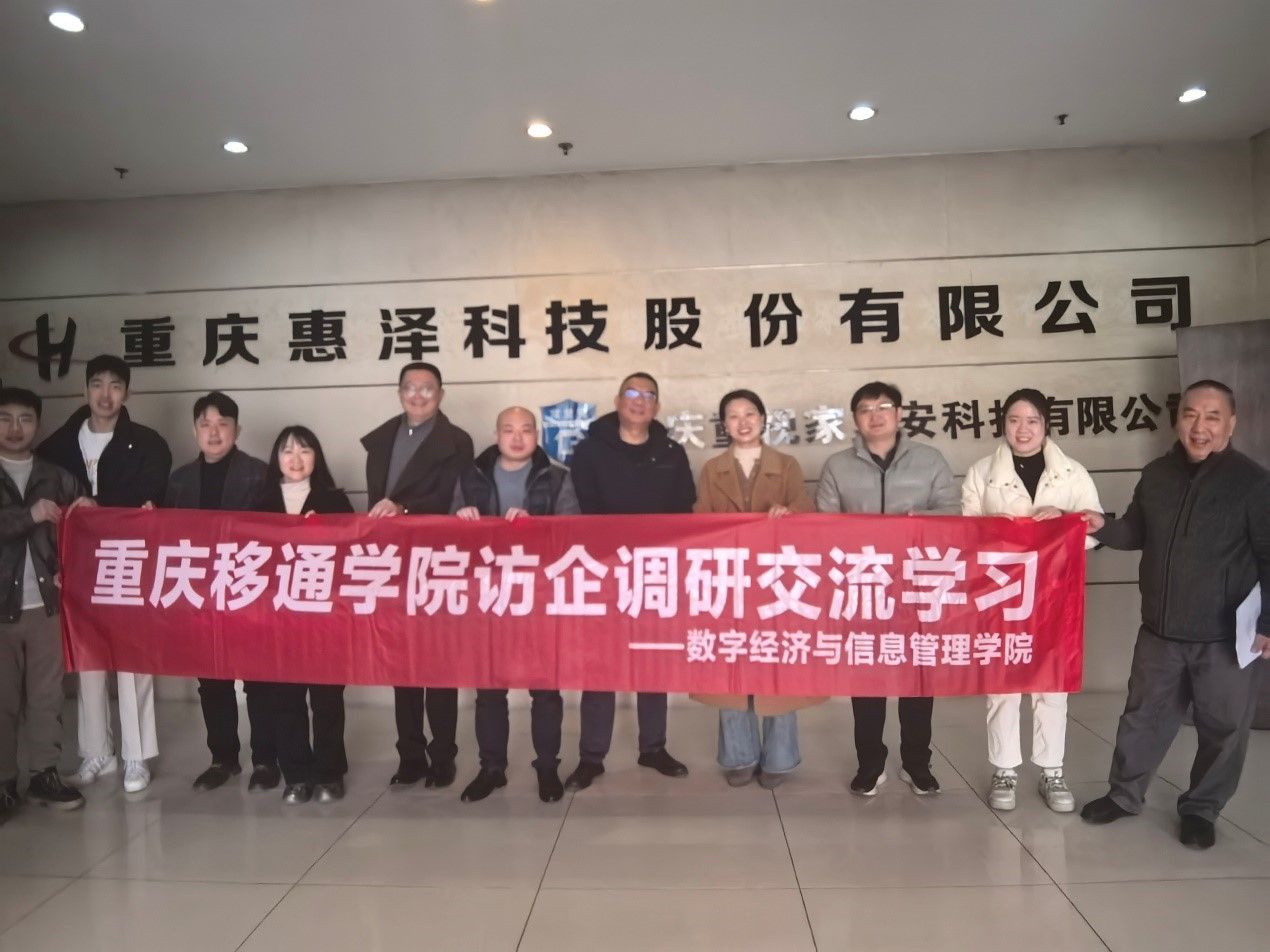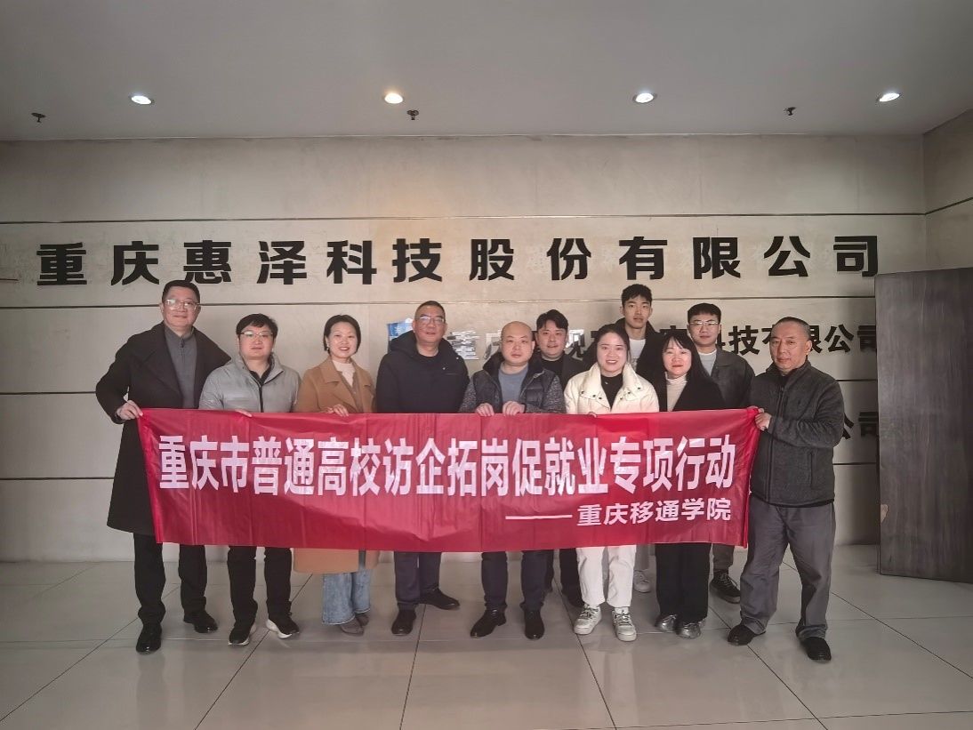 为贯彻落实《重庆移通学院关于开展书记校长访企拓岗促就业专项行动方案的通知》(移通[2025]35号文件)精神,根据“访企拓岗”促就业专项行动工作部署,深入了解企业需求,挖掘实习就业岗位,为毕业生争取更多就业机会,全力促进毕业生更加充分更高质量就业。2025年3月7日,重庆移通学院数字经济与信息管理学院院长刘贵容、大数据院长潘显兵带队,携同教学副院长王哲,工程管理教研室骨干教师王华、杨礼静,辅导员任超群、罗德康及优秀学生代表,前往重庆惠泽科技股份有限公司,开展了访企拓岗和调研交流活动。