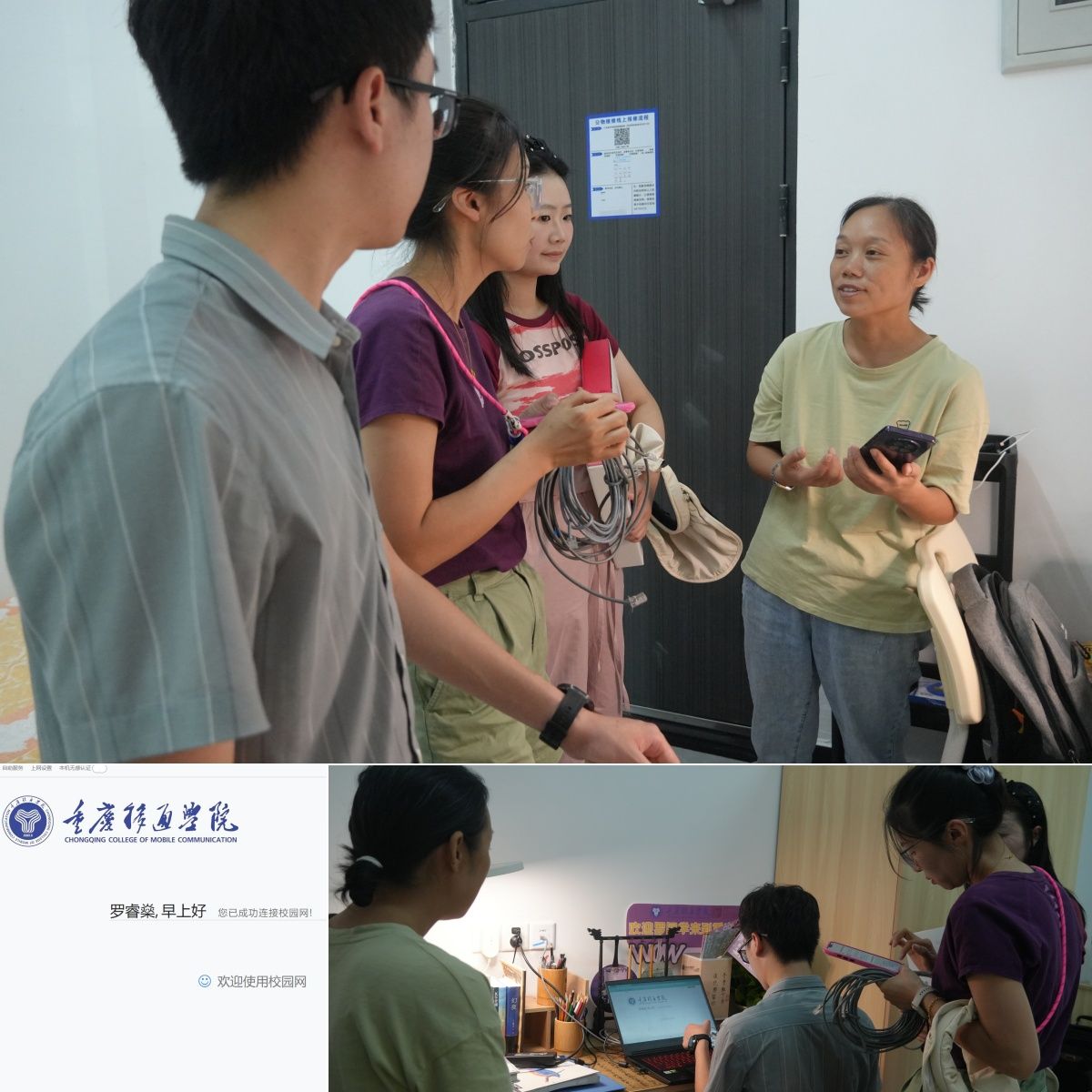 迎新工作期间,网信中心提前对全校网络设备及平台进行全面检查和优化,确保迎新期间网络及各类系统的稳定运行。让新生和家长们在校园区域,随时享受到高速、畅通的网络体验感。期间,通过学生处得知罗睿燊同学的宿舍对于网络需求的消息,网信中心即刻安排老师前往该宿舍了解罗妈妈的需求,同时协同綦江电信对小罗同学所在宿舍网络环境进行了重新划分,并且为罗妈妈进行网络使用的耐心讲解。希望这份力所能及的祝福,能够为小罗同学和妈妈的大学生活增添一份温馨与便利。