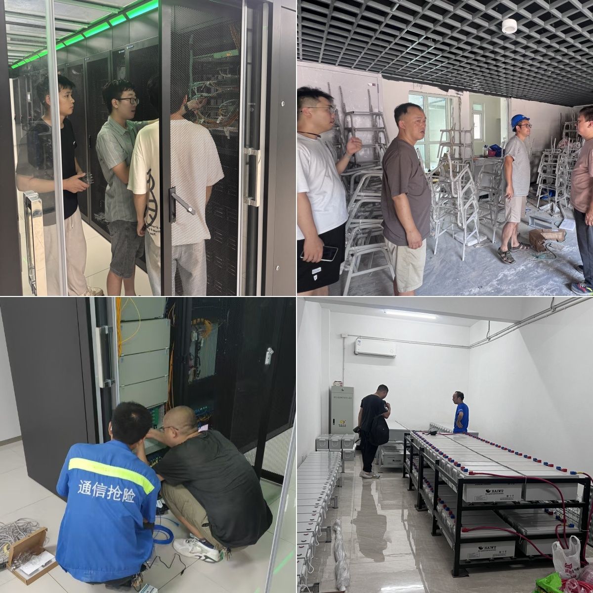 暑期,为保障开学前完成相关工作,把工期尽量往前赶,设备刚一到货,网信人在三期尚不具备稳定电力保障的前期,就已经创造条件单独搭建环境,将各类核心设备及相关款型设备进行了安装,为后期正式调测节省了大量时间。由于工期紧张,为此,网信技术人员主动放弃暑期休息时间,抓质量抢工期赶进度,夜以继日的投入紧张工作之中。截至目前,已经完成了三期校园网络、多媒体教室改造、智慧教室的网络布线、校园安防建设部署、云办公、IDC机房扩容等10余个信息化项目等各类网络设备的部署和调试工作。