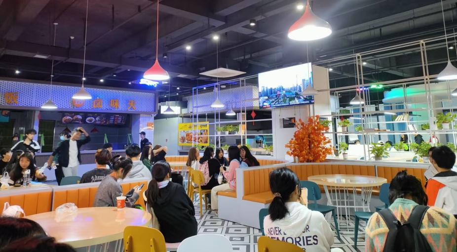 在东溪食堂则是另外一番景象,除了有喷香的美食以外,在这里还多了几分文化的韵味,英语角、新闻早播、“神秘人”任务……多了几分学习英语的清悠,多了几分趣味游戏的闲适,少了匆匆赶“早八”的慌张,少了几分慵懒。各个环节的设计,不仅意味着同学们要身体上的健康,也要知识上的充盈。同学们用学习英语知识充实着自己,让早上的时间更有了意义,每日的英语单词积累,使江海既成,使千里既行。同学们学习英语的身影也把书香传递到了整个校园,形成了良好的学习氛围。