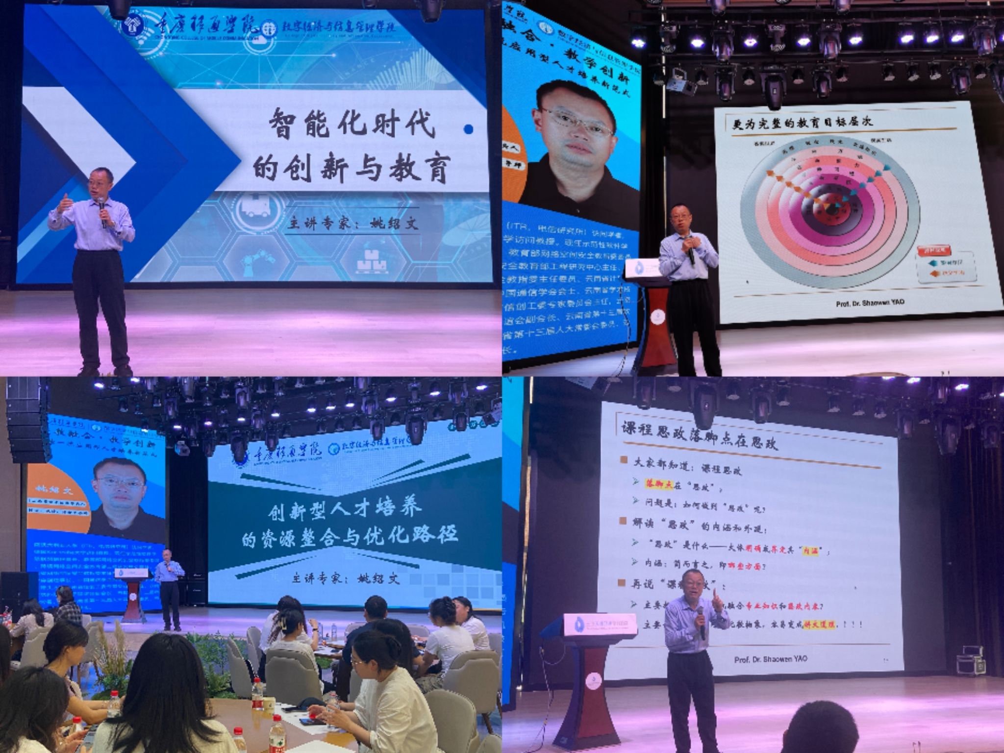 3月14日,培训进入专题赋能阶段。云南省学术带头人、博士生导师姚绍文教授围绕“智能化时代的创新与教育”和“创新型人才培养的资源整合与优化路径”两大主题,结合多年产教融合实践,深入探讨教育变革与产业升级的共生逻辑,从宏观视角勾勒教学创新的底层框架。