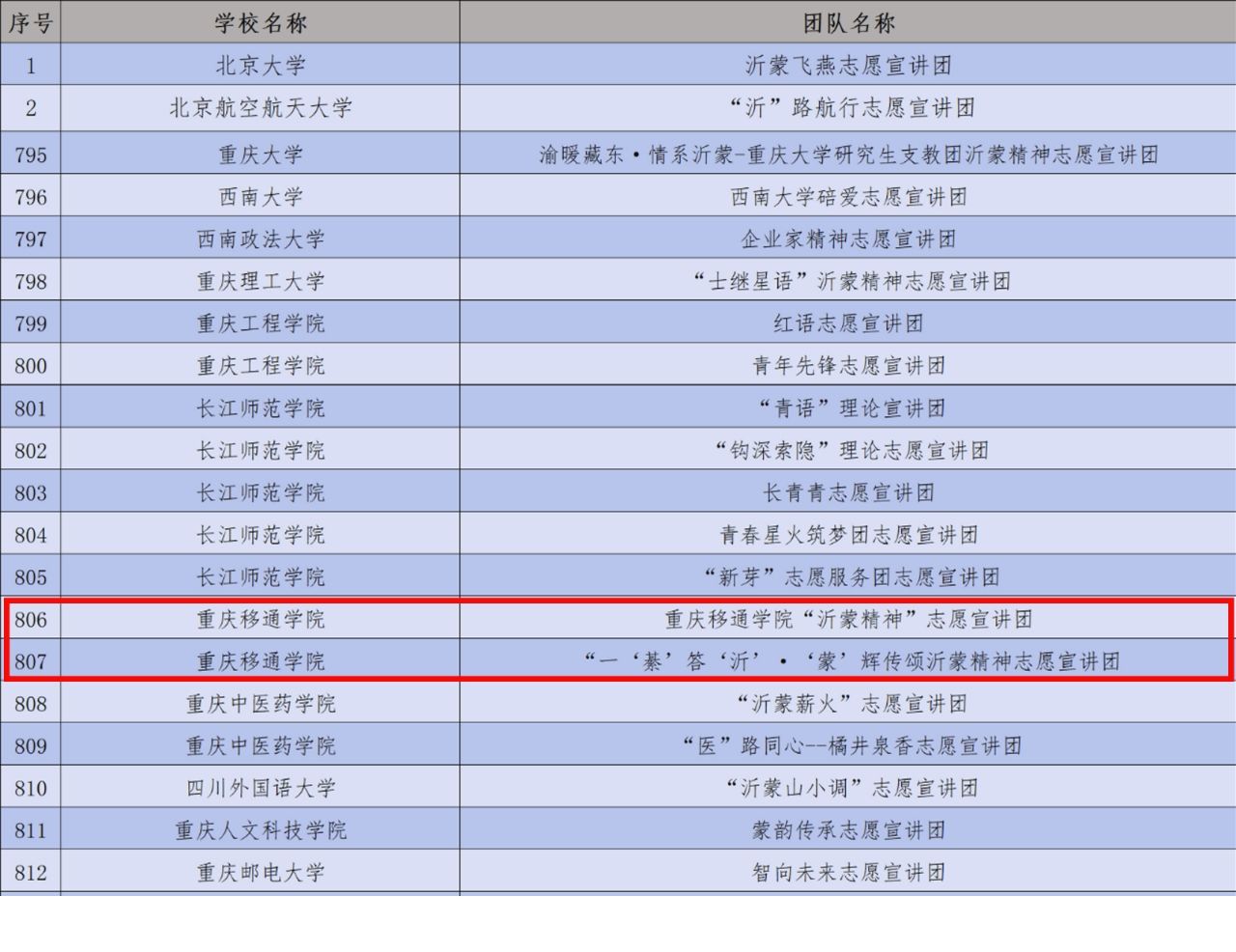 近日,团中央青年志愿者行动指导中心、共青团山东省委、中共临沂市委共同发布了《关于遴选2024年全国大学生沂蒙精神志愿宣讲团的公告》。经过层层筛选与激烈竞争,重庆移通学院大健康管理学院一“綦”答“沂”·“蒙”辉传颂沂蒙精神宣讲团成功入选2024年全国大学生沂蒙精神志愿宣讲团。