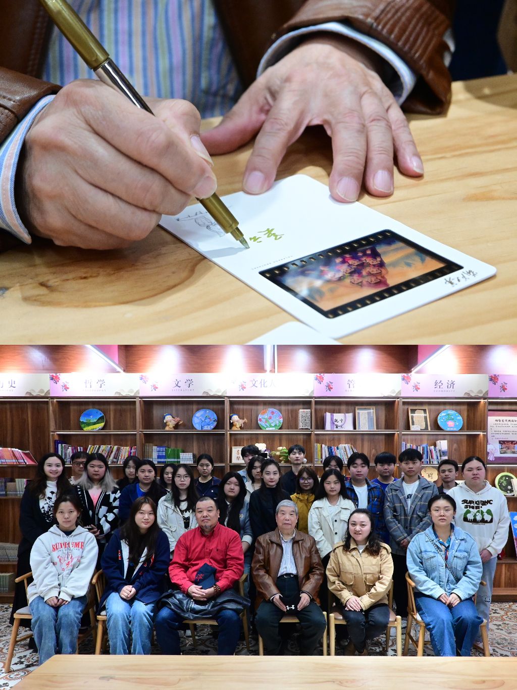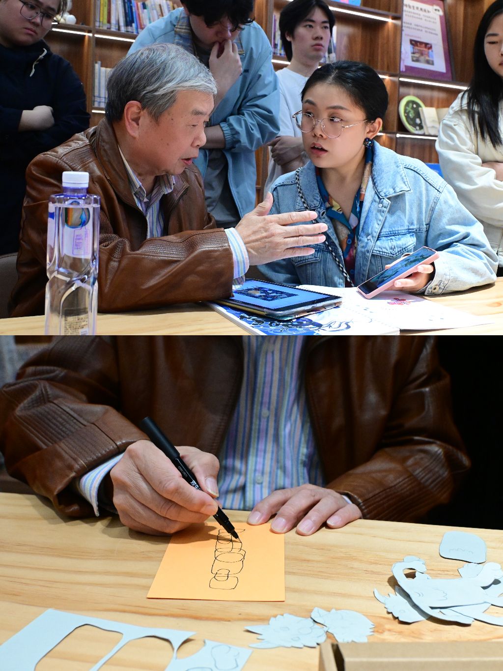 指导交流结束后,签名拍照环节将活动推向高潮。同学们拿着明信片或自己的作品,有序等待吴云初先生签名,这一画面成为大家难忘的记忆。