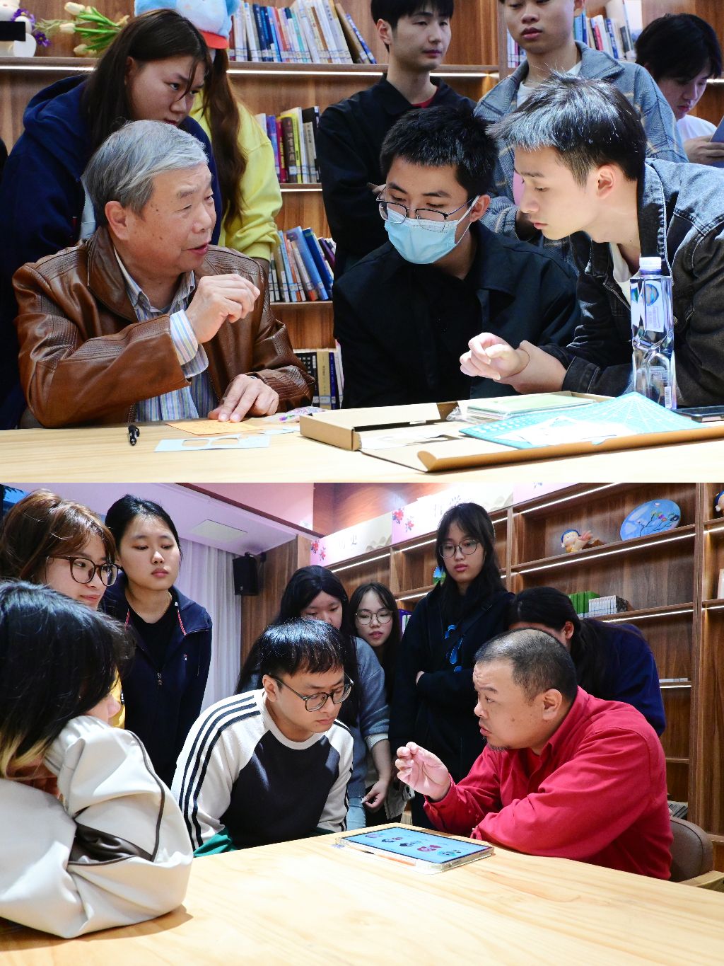 11 月 12 日下午 4 点,“大咖教动画”专业技术指导交流会在观云书院华文书吧精彩举行。本次活动由戏剧影视学院综合艺术教研室主任袁梦茹主持,吴云初先生与其子吴忱老师共同出席,为动画专业师生带来一场知识与灵感碰撞的盛宴。