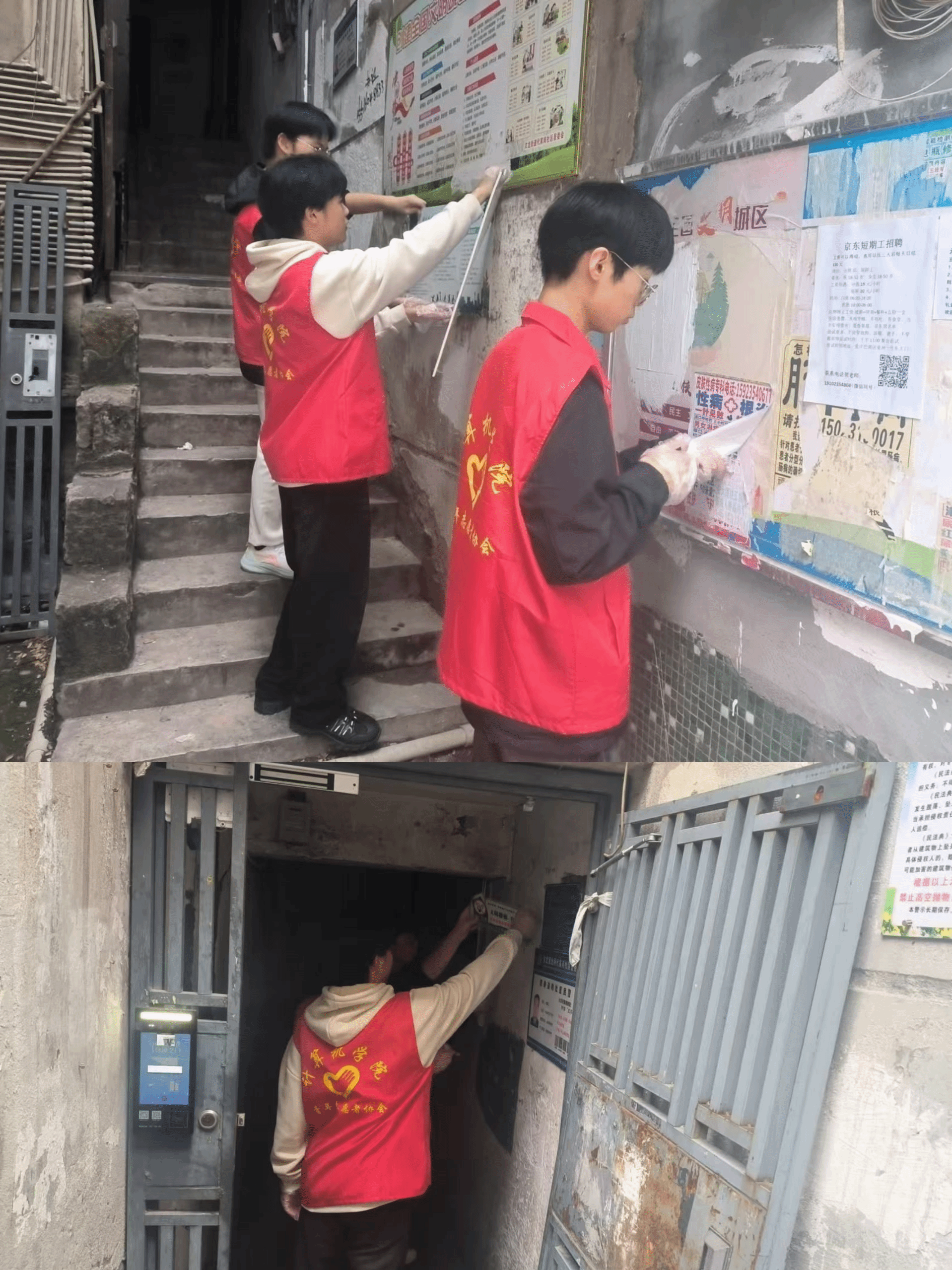 第二组的志愿者他们手持铲子、喷壶等工具,对社区内的小广告进行集中清理。小广告不仅影响社区环境的美观,还可能存在诈骗等信息,给居民的生活带来安全隐患。志愿者们耐心细致地将小广告撕除,并用涂料覆盖残留的痕迹,让社区墙面恢复了原有的整洁。