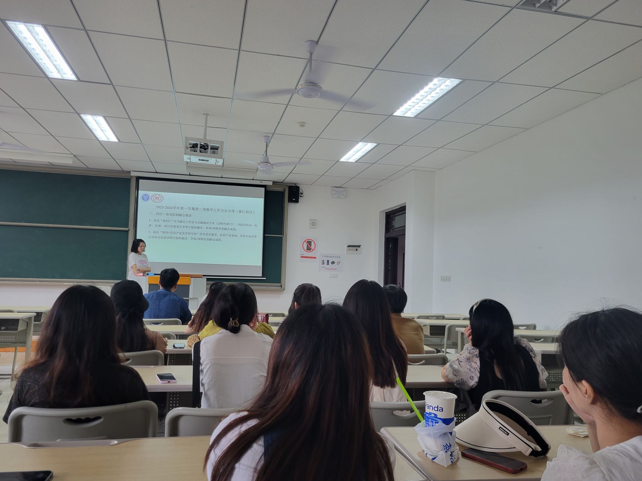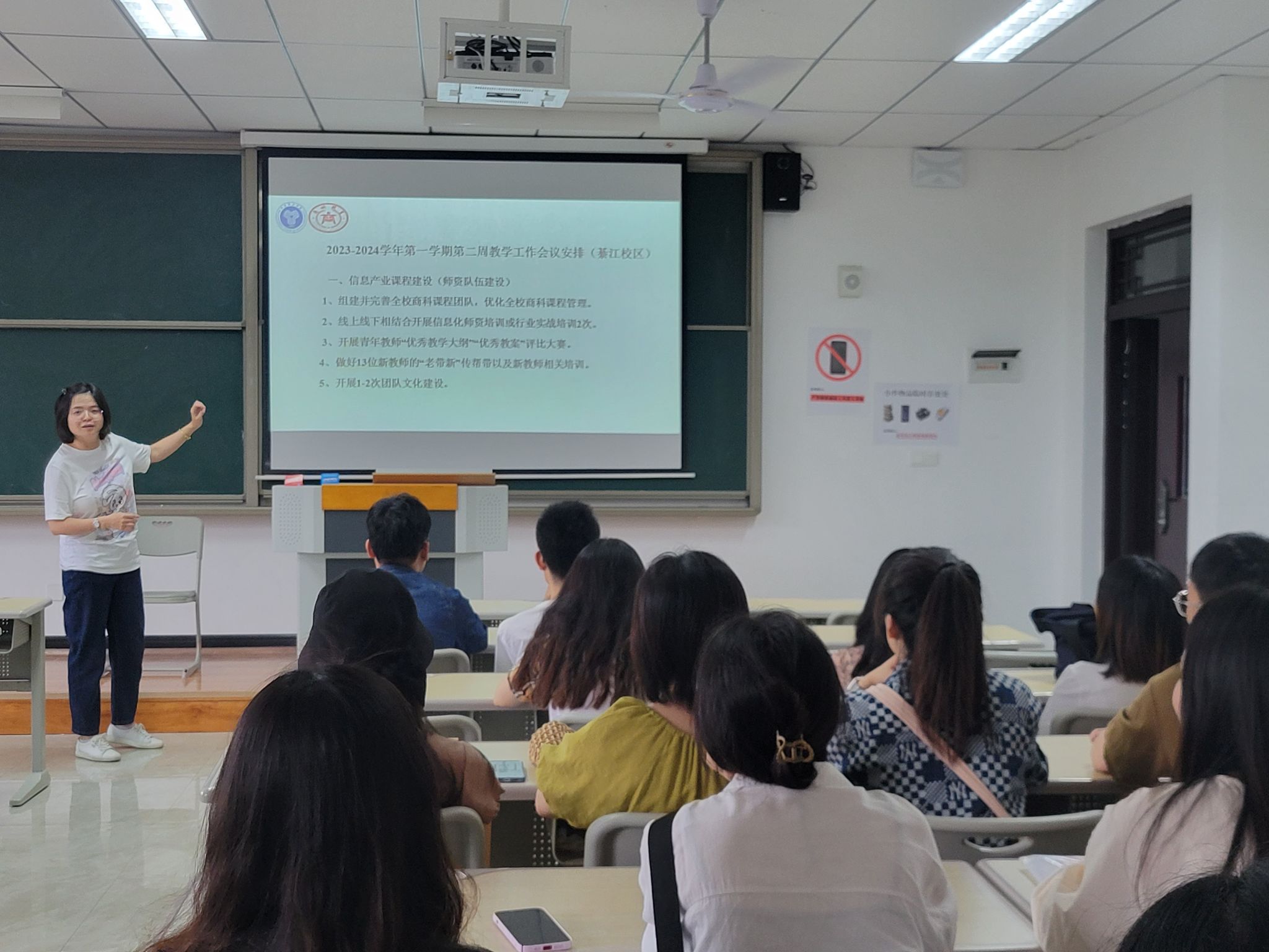 会议伊始,杜嘉老师对学院目前课程建设的开展情况以及教师们参与的培训情况进行概括总结,强调课程建设对于立德树人的重要性,鼓励教师对此要多维度关注并提升个人相应能力。为此学院通过线上、线下相结合的方式开展信息化师资培训及行业实战培训,以此帮助教师们更好地推进信息化课程建设。