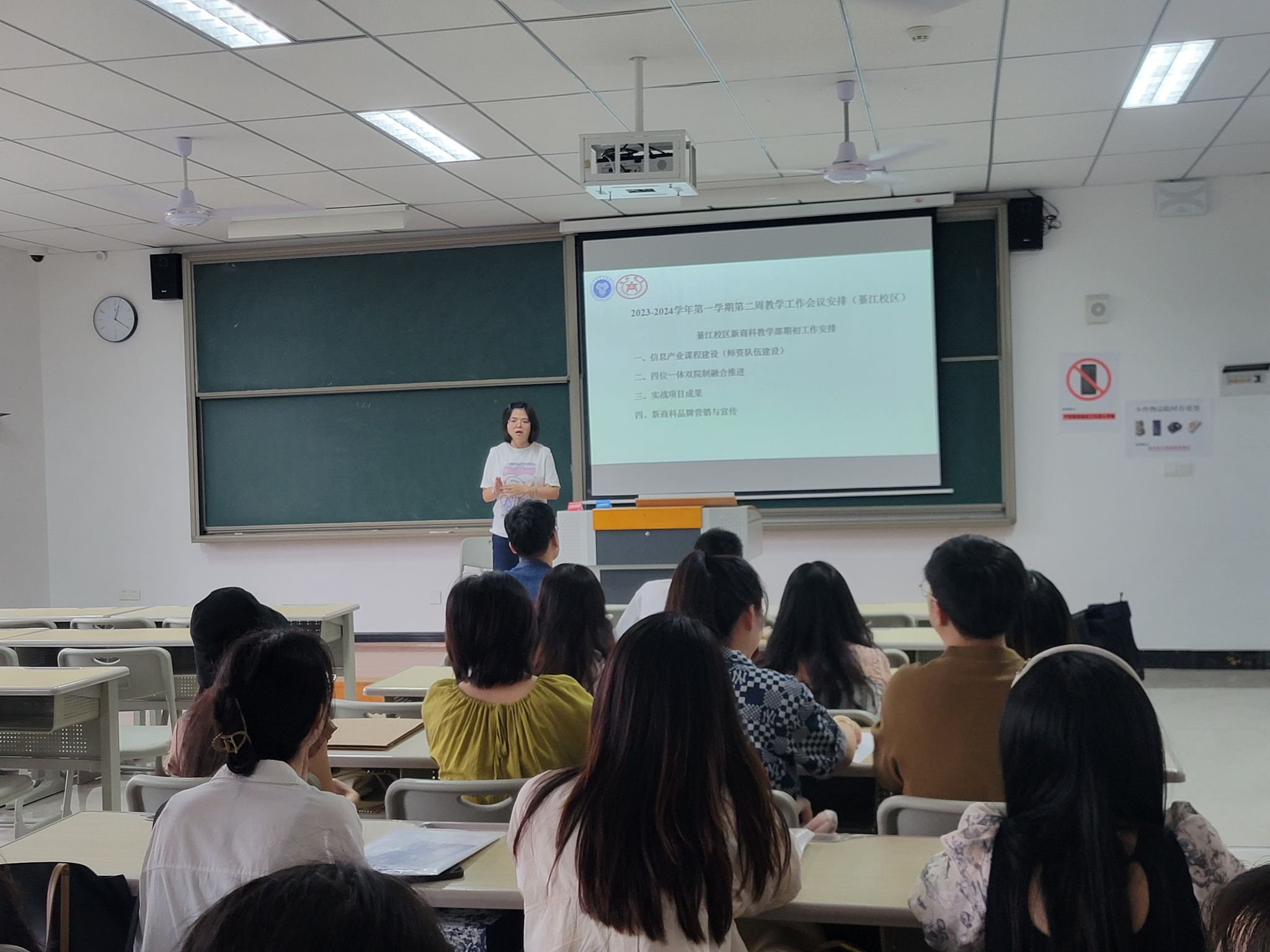 为切实推进新学年新商科工作的有序开展,据上学年商科专项融合项目的部分成果,提出本学年商科融合的工作安排。9月13日下午4点,新商科教学部(綦江校区)在仁者楼310开展了商科融合专项工作期初交流会,本次会议由副院长范保珠组织,杜嘉老师主持,全体教师参与。