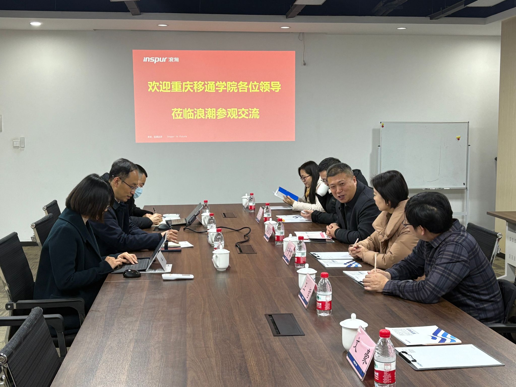 参观结束后,双方在公司会议室召开校企合作座谈会。浪潮通用软件有限公司重庆分公司总经理王宏波首先对校方来访表示热烈欢迎。他指出,数字经济正成为推动社会发展的核心引擎,企业数字化转型亟需兼具技术能力与实践经验的高素质人才。浪潮近年来积极与高校合作,通过共建实验室、实训基地、联合开发课程等方式,助力高校人才培养与产业需求接轨。他期待与重庆移通学院在科研攻关、实习就业、师资培训等方面展开深度合作,实现资源共享、互利共赢。