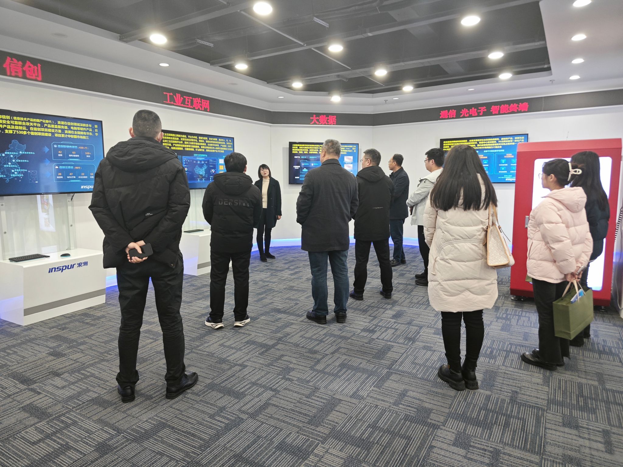 我校参访人员在浪潮通用软件有限公司领导带领下,首先参观了集团展厅。总经理助理冉红利结合企业数字化沙盘、产品展示区及业务案例墙,详细介绍了浪潮的发展历程、核心业务及行业影响力。作为中国领先的云计算、大数据服务商,浪潮深耕信息技术领域四十余年,业务涵盖云服务、工业互联网、智慧城市、企业数字化转型等方向,为全球120多个国家和地区提供数字化解决方案。