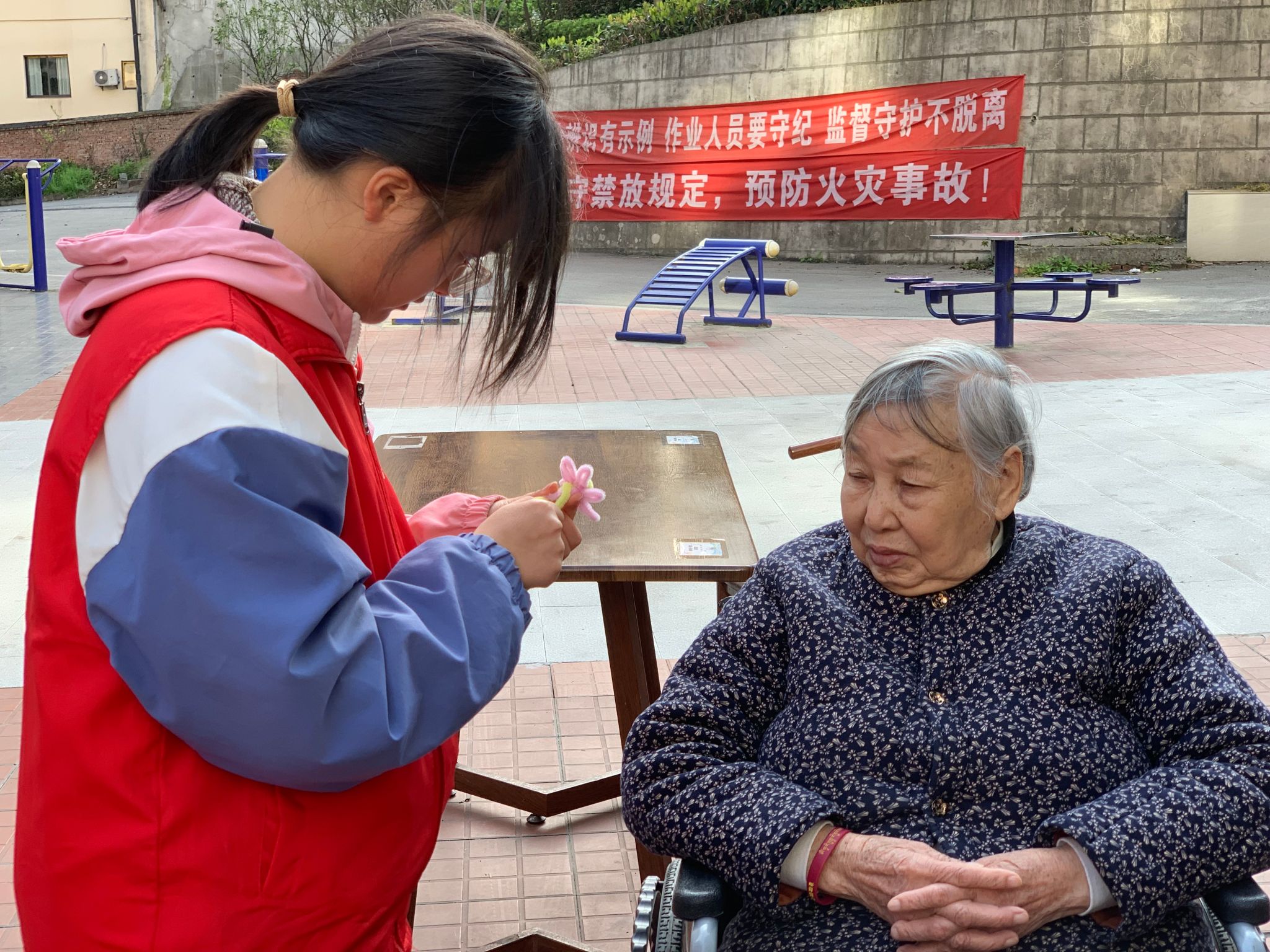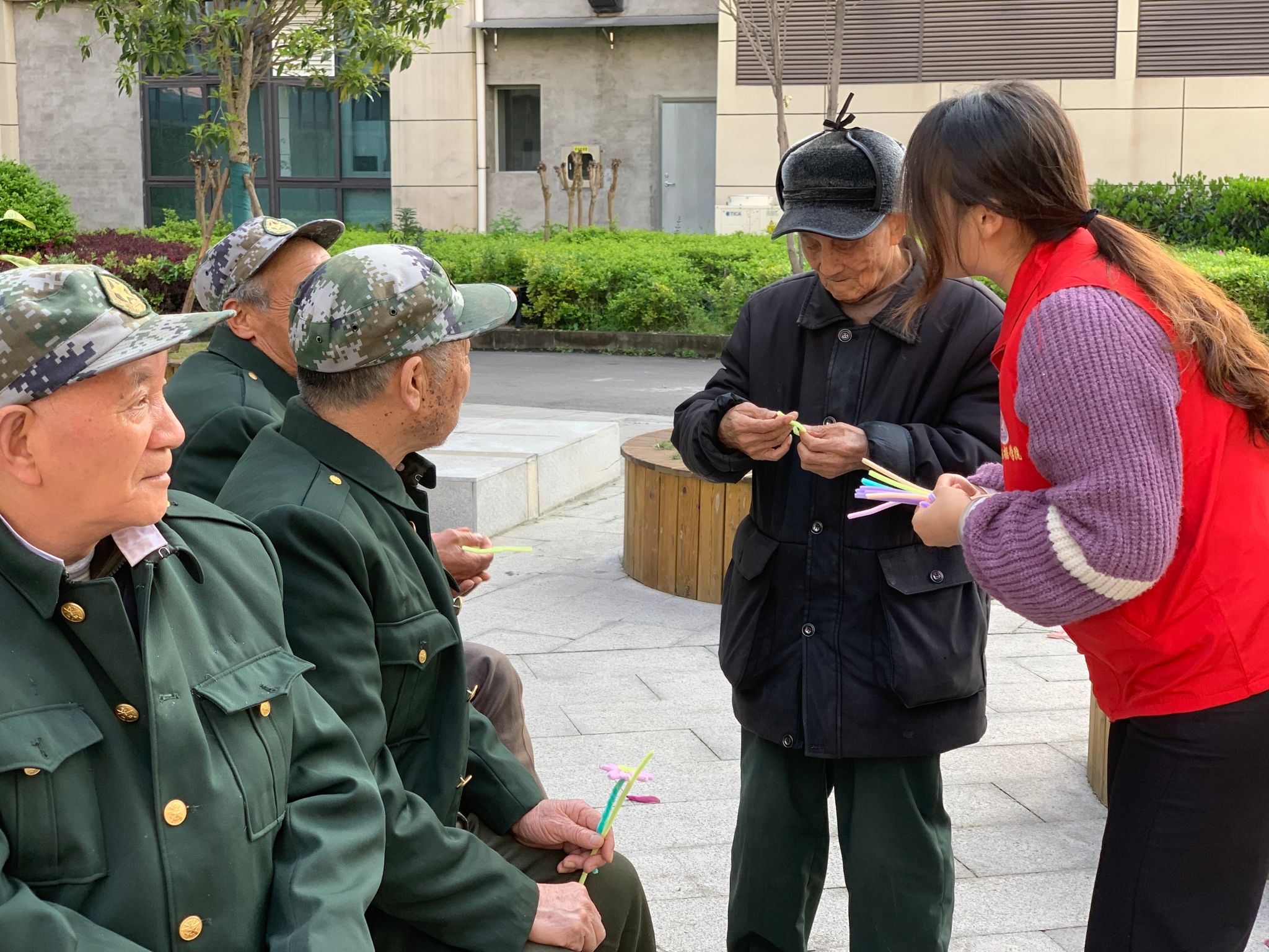 文艺表演结束后,DIY手工协会的手工互动环节随即启动。在志愿者的协助下,老人们参与扭扭棒编织与黏土制作。他们精心创作,完成了一系列创意手工作品,展现了志愿者们的巧思与热情,同时也加深了与老人们之间的情谊。活动中,志愿者们与老人们深入交流,分享故事与喜悦,营造了温馨和谐的氛围。