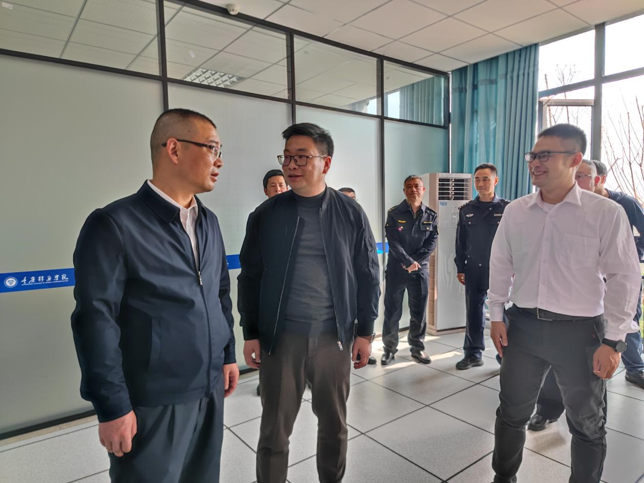在校区应急指挥中心,徐勇副区长一行详细了解了天眼系统、安防一体化布控及人员值班值守情况;同时强调,校园安全是重中之重,要加强设施设备的日常维护,推进校警联动,全力做好校园安全稳定工作。
