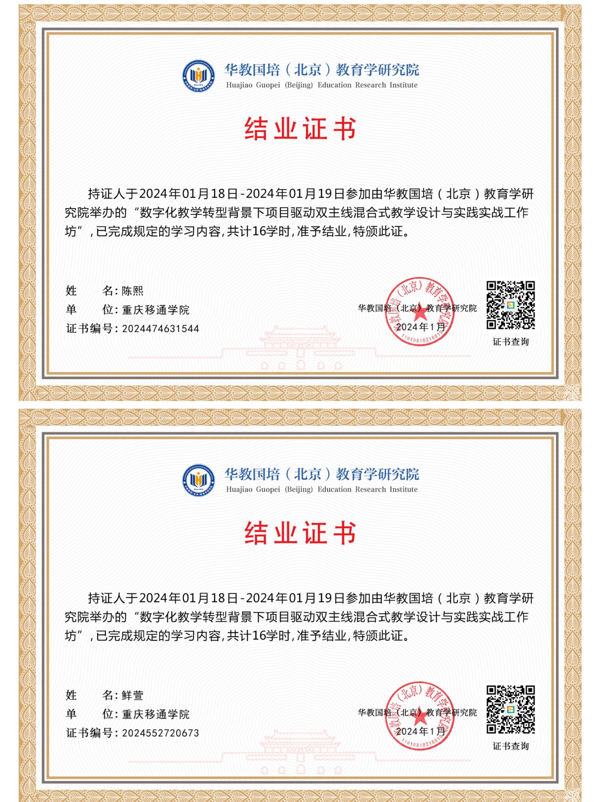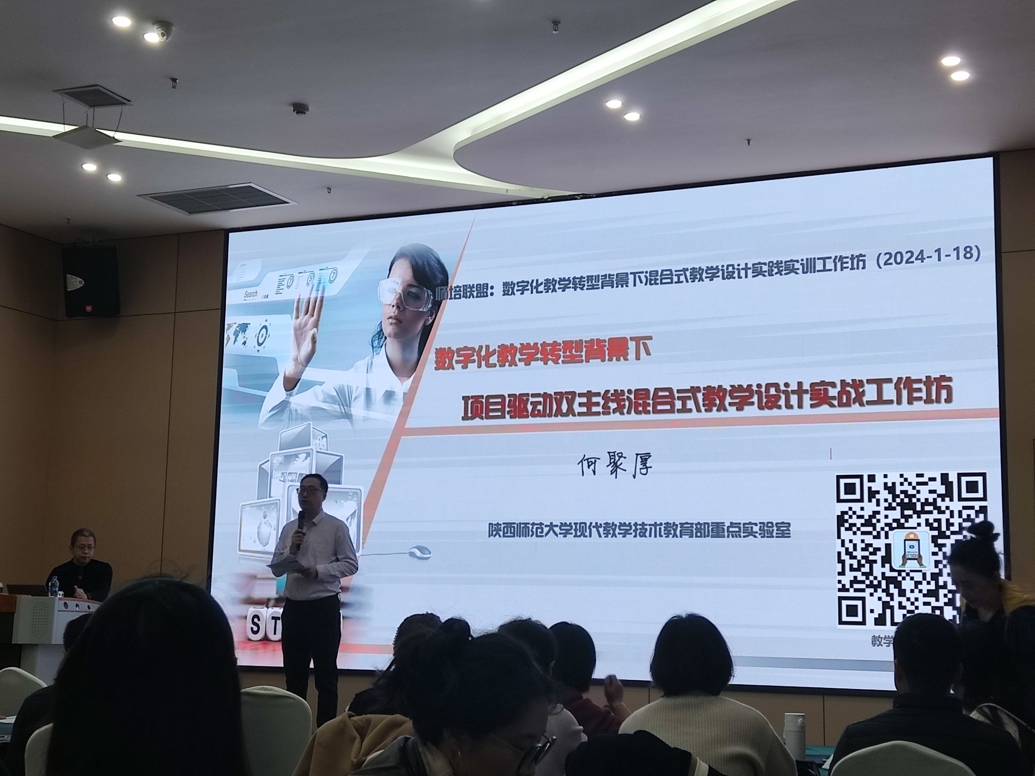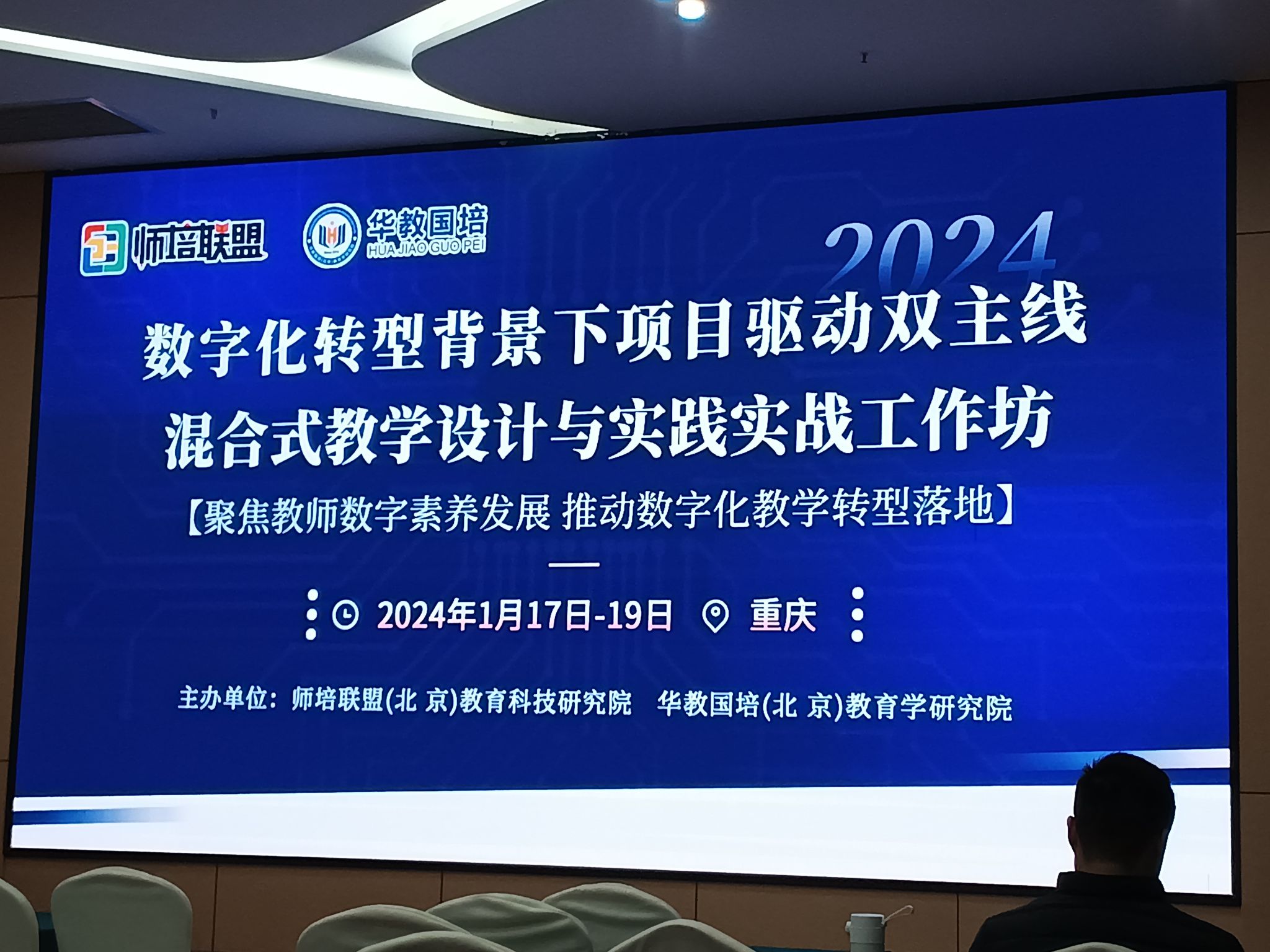 2024年1月18日,新商科教学部陈熙和数字媒体产业学院鲜萱两位老师参加了数字化教学转型背景下项目驱动双主线混合式教学设计与实践实战工作服培训课程,该培训课程由华教国培(北京)教育学研究院和师培联盟共同推出,在重庆市渝北区智选假日酒店举办。本次培训邀请了陕西师范大学博士生导师何聚厚教授,何教授的研究方向主要集中在人工智能与教师培育、信息化教学模式创新、技术增强学习、大数据环境下智能信息处理、教师教学发展等方面。