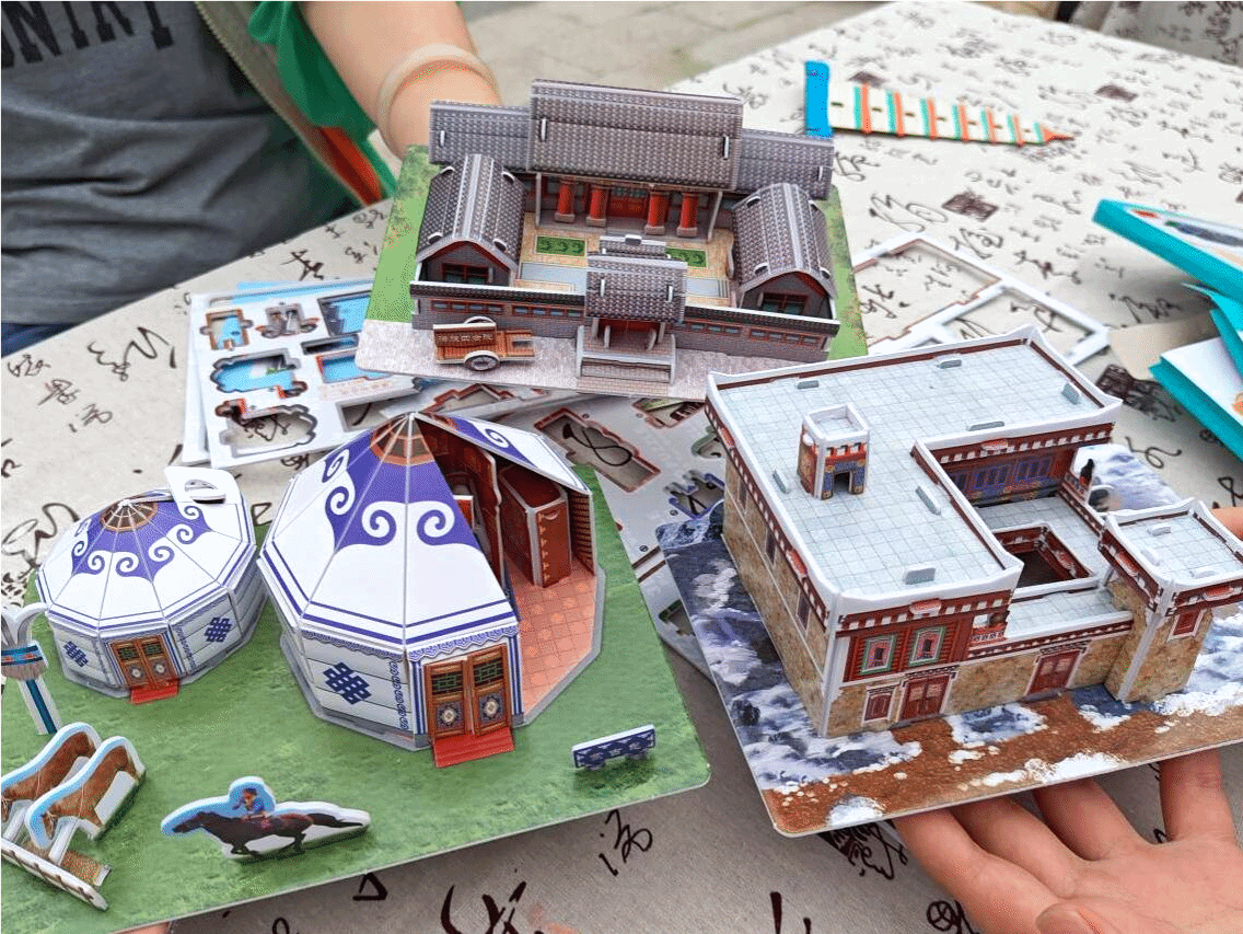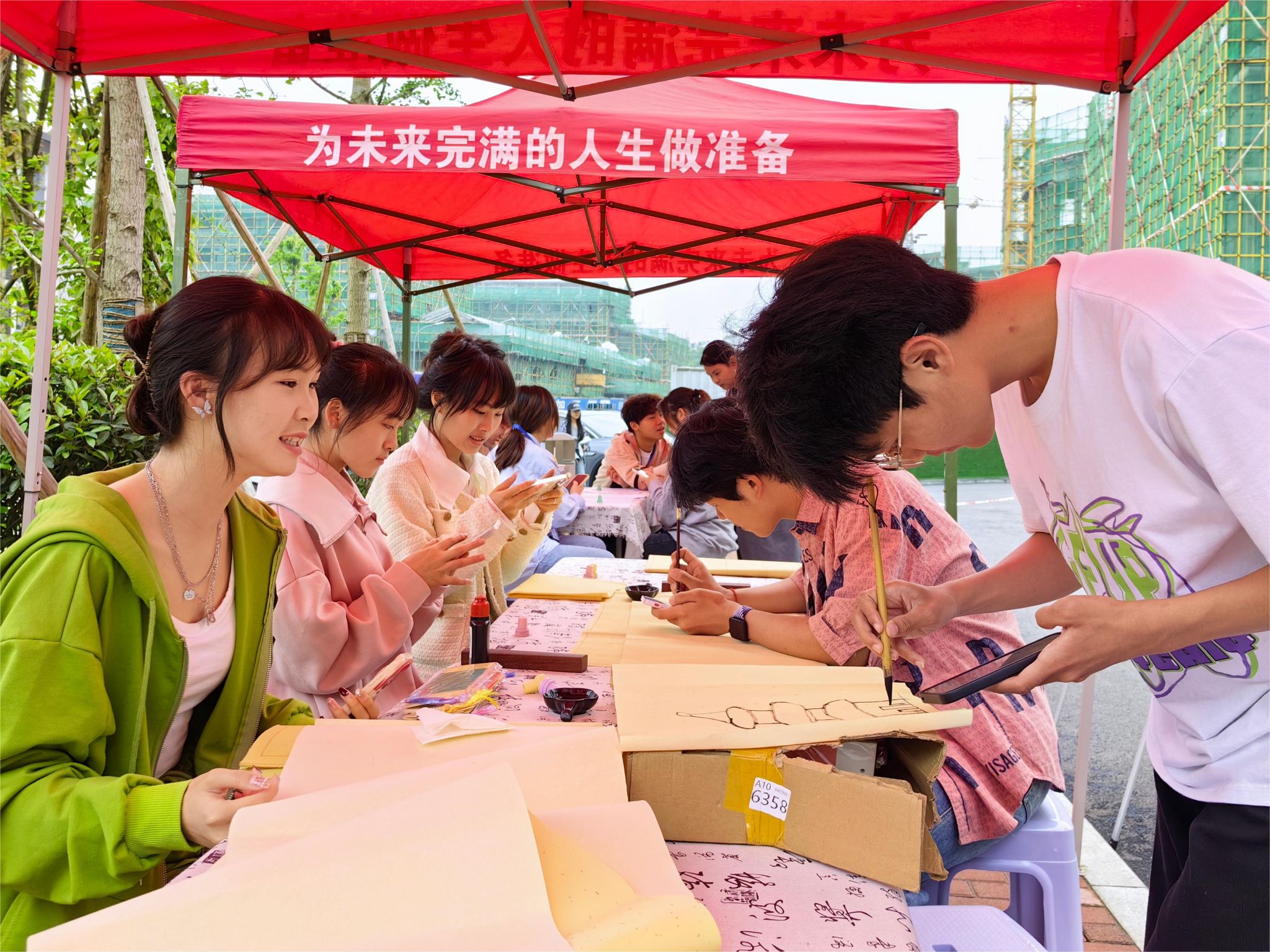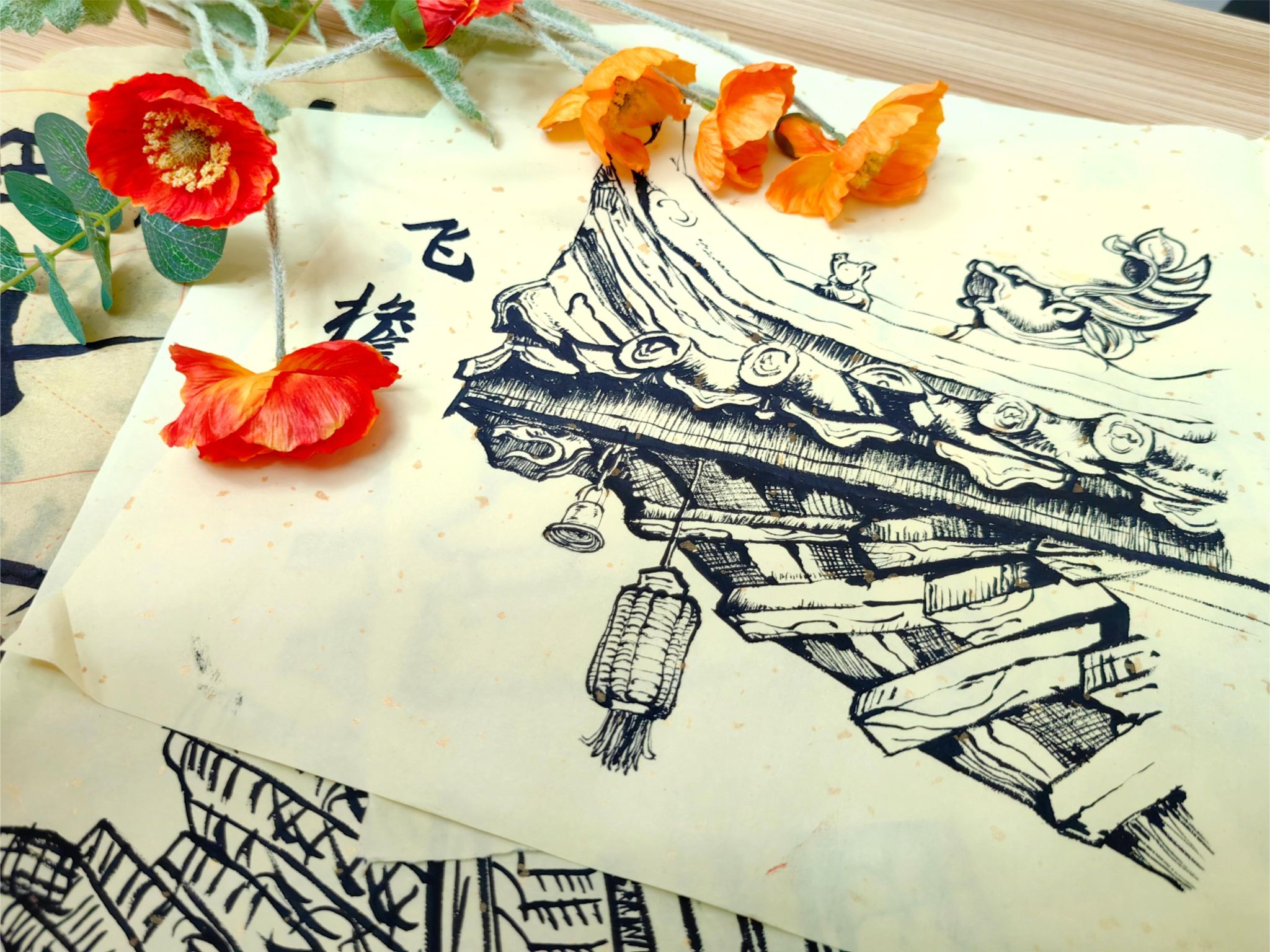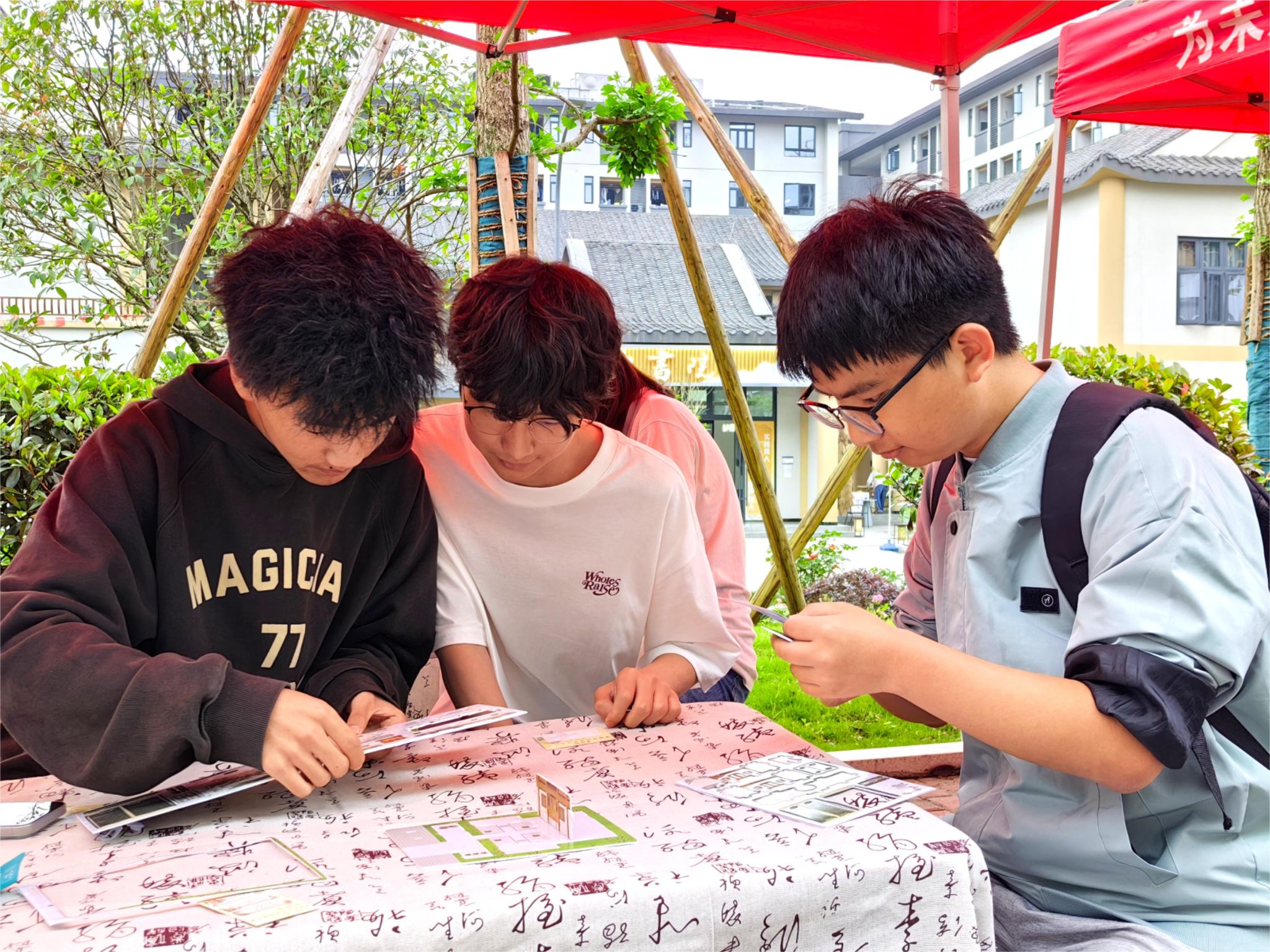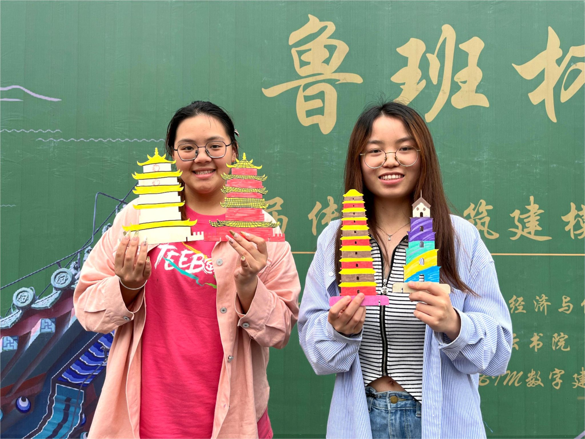 为提升移通学子的参与体验,本次比赛为建筑小白们提供了建筑拼图、建筑书画、建筑问答等趣味活动。同学们在协作互动中感受到建筑美学蕴含的空间思维,江南水乡、苏式园林,各具特色的微缩景观模型拼图逐渐在参与者的手中成型;同时,“青花墨字”书画社带领着同学们手执毛笔描绘飞檐斗拱、青砖灰瓦等传统元素,一张宣纸、一方墨砚,传统建筑的形态神韵跃然于纸上。同学们在兴趣的驱使下参与到传统建筑模型的拼接和绘制中,建模“小白”也能有自己的“大制作”。