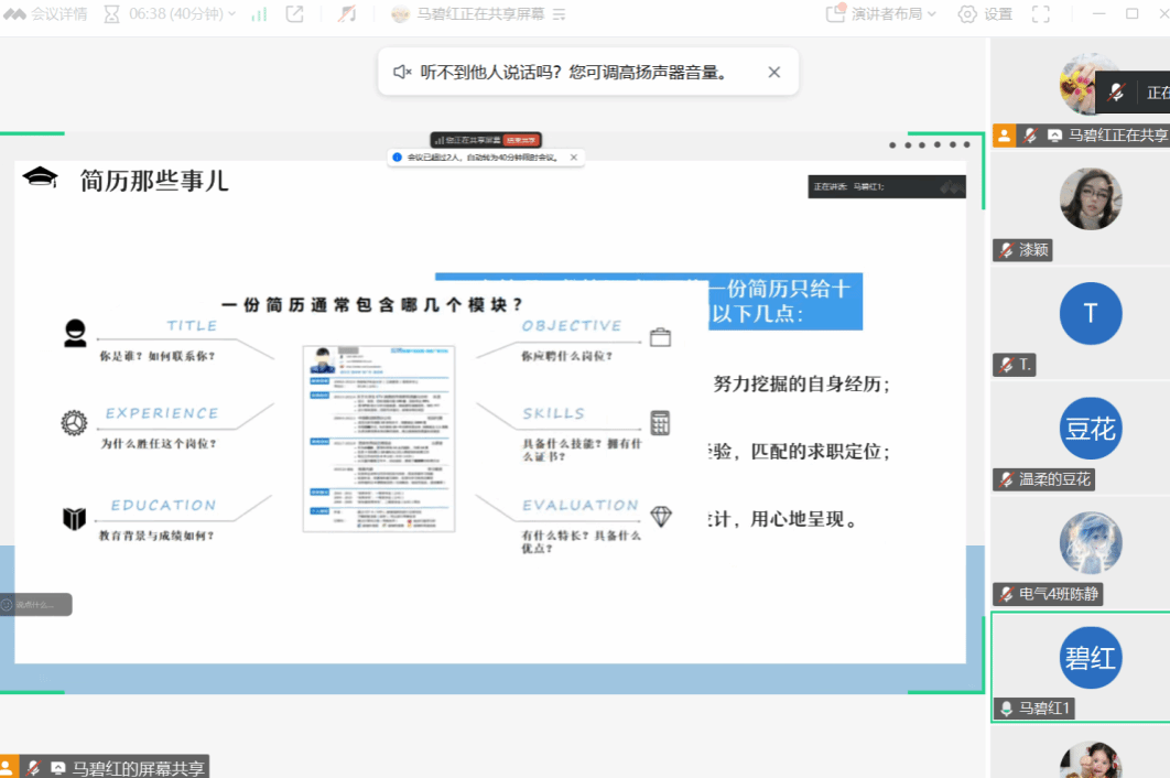 异科导师马碧红针对电气工程及其自动化专业的学生,本次就业指导活动将从专业定制化简历指导、面试技巧培训等方面展现其独特之处,助力同学们迈向理想的职业道路。