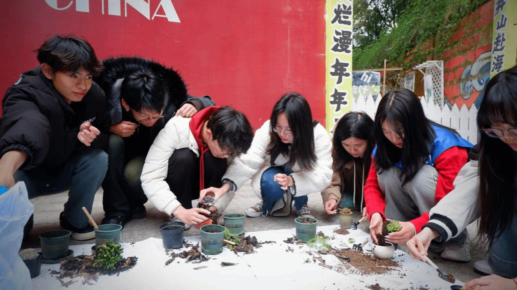 异科导师杨钊熙结合植树节契机,将劳动教育与心理解压相结合,带领异科学生在鱼城书院山海后街共同种植多肉植物,引导学生树立绿色环保意识,在充满生机的春日图景中体验劳动乐趣,释放心理压力。