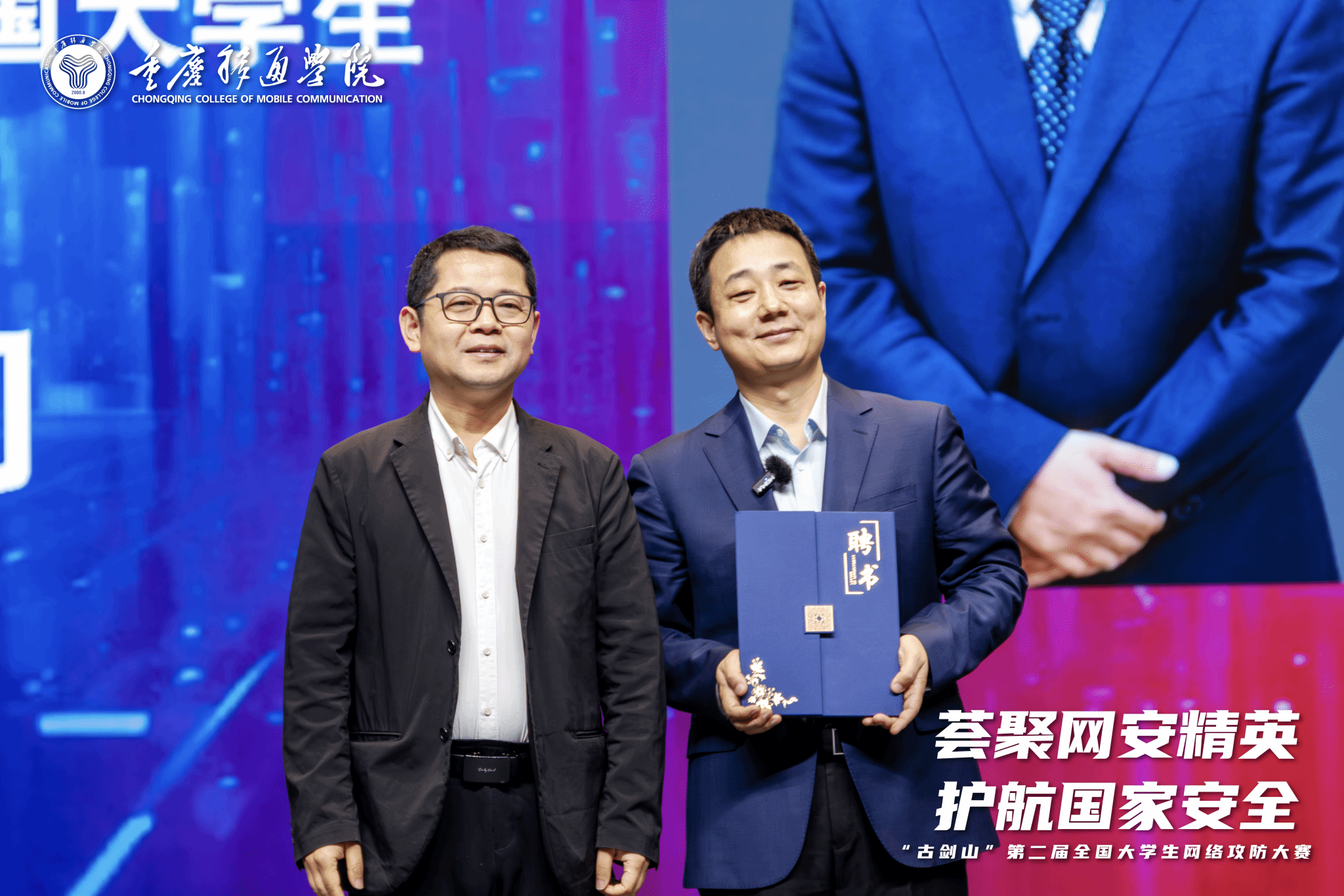 活动尾声,重庆移通学院党委副书记、常务副校长王永周代表“古剑山”全国大学生网络攻防大赛组委会为朝乐门教授颁发专家顾问聘书,期待朝教授给予大赛活动周更多的支持与帮助,进一步深化合作,为师生创造更多的学习、交流机会。