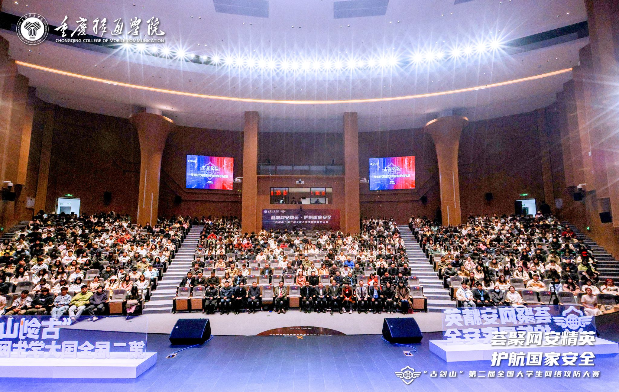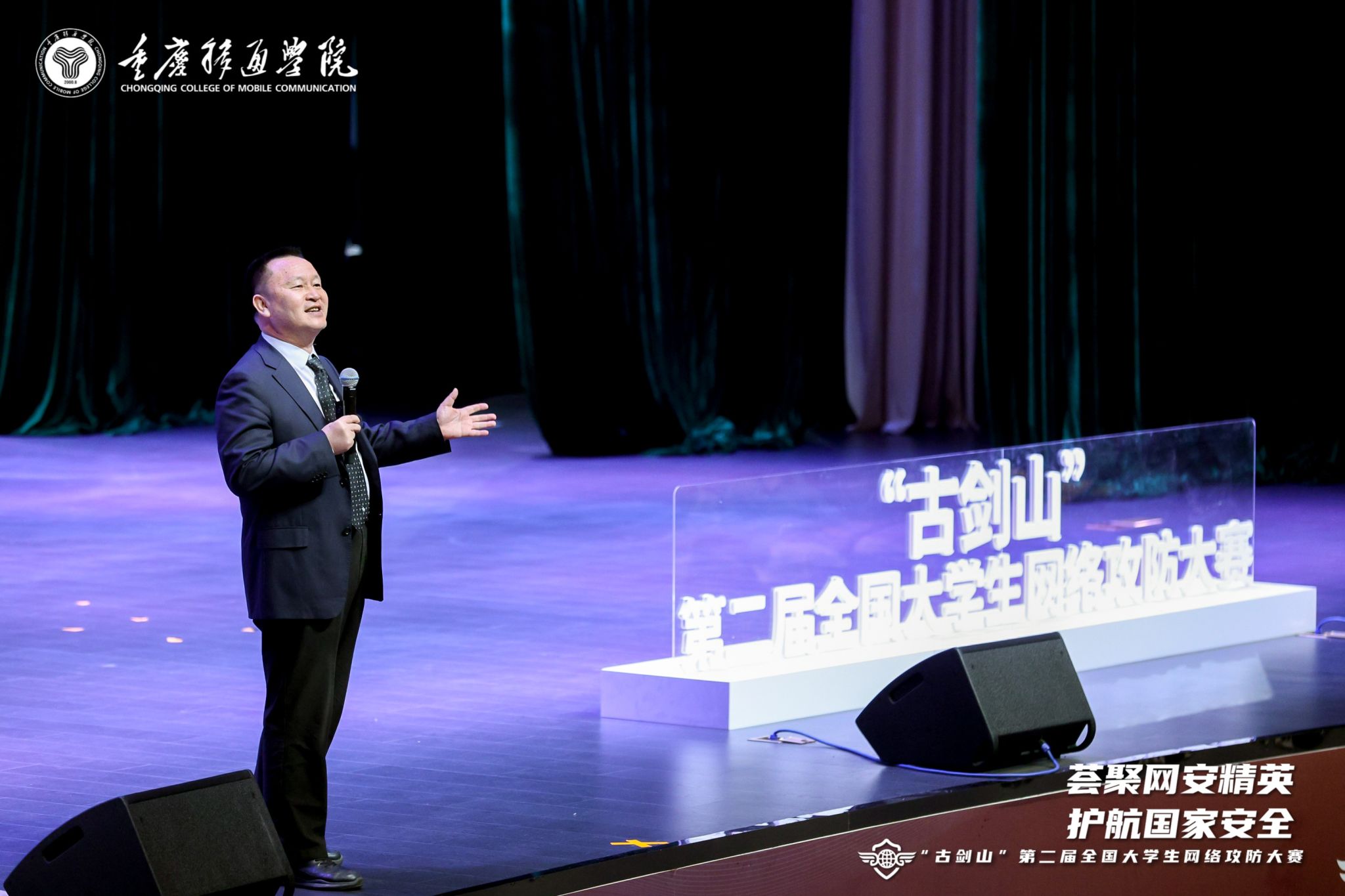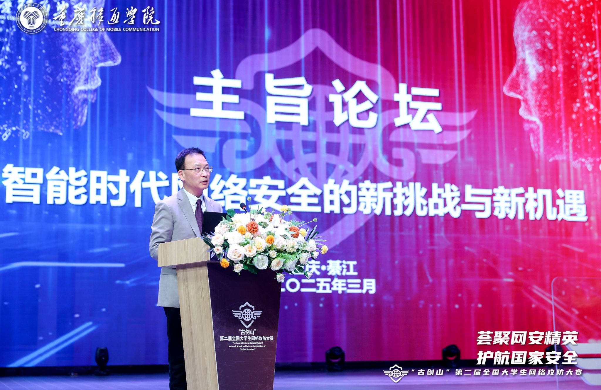 2025年3月30日9:00,“古剑山”第二届全国大学生网络攻防大赛主旨论坛在重庆移通学院綦江校区綦艺大剧院成功举办。本届论坛以“智能时代网络安全的新挑战与新机遇”为主题,汇聚了政产学研各界精英,深入剖析智能时代网络安全的新态势,共同探讨应对挑战的策略,挖掘潜藏的机遇。重庆移通学院校长吕翊担任主持人,重庆市綦江区原人大常委会主任、关心下一代工作委员会主任母明江、重庆市綦江区政协副主席唐应良及市、区、校、企业各职能部门领导、代表出席。特别邀请新加坡南洋理工大学终身教授、东南大学首席教授黄广斌,上海交通大学网络空间安全学院院长李建华,电子科技大学教授范明钰,北京邮电大学教授王立新等知名学者发表主旨演讲,为现场师生带来了一场高规格的知识盛宴。