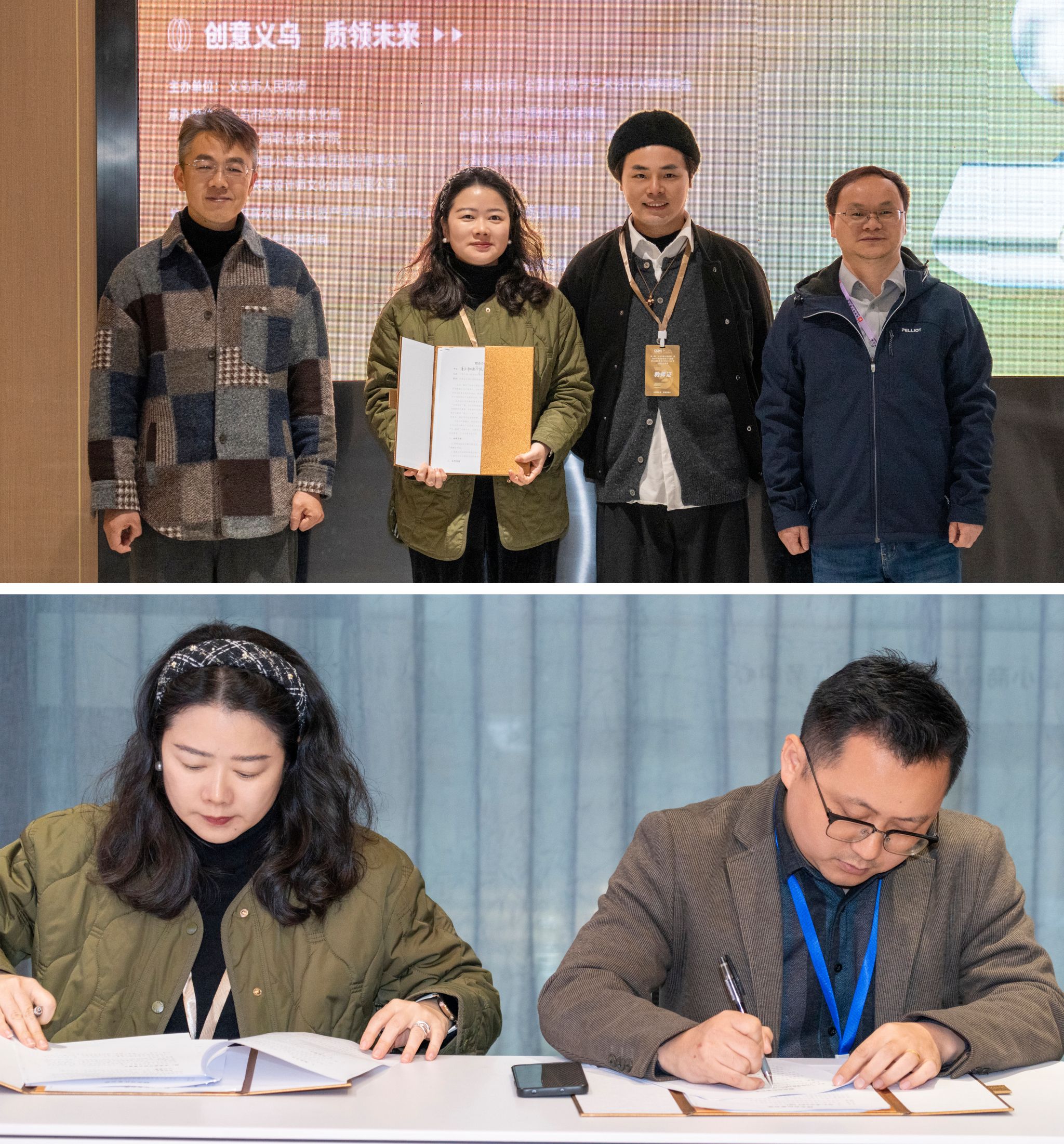 工坊期间,王芳副院长代表戏剧影视学院与义乌中国小商品城创意设计发展服务有限公司、未来设计师全国高校数字艺术设计大赛组委会签署了合作意向框架。双方将围绕赛事合作与产教融合展开多层次协作:一、聚焦小商品创新设计与市场应用,联合推动赛题开发与成果孵化。二、通过企业导师与学院教师的联合指导,提升学生作品的商业落地性。三、搭建校企资源互通平台,促进教师参与企业研发实践,并通过实战型工作坊强化学生创新实践能力与就业竞争力。