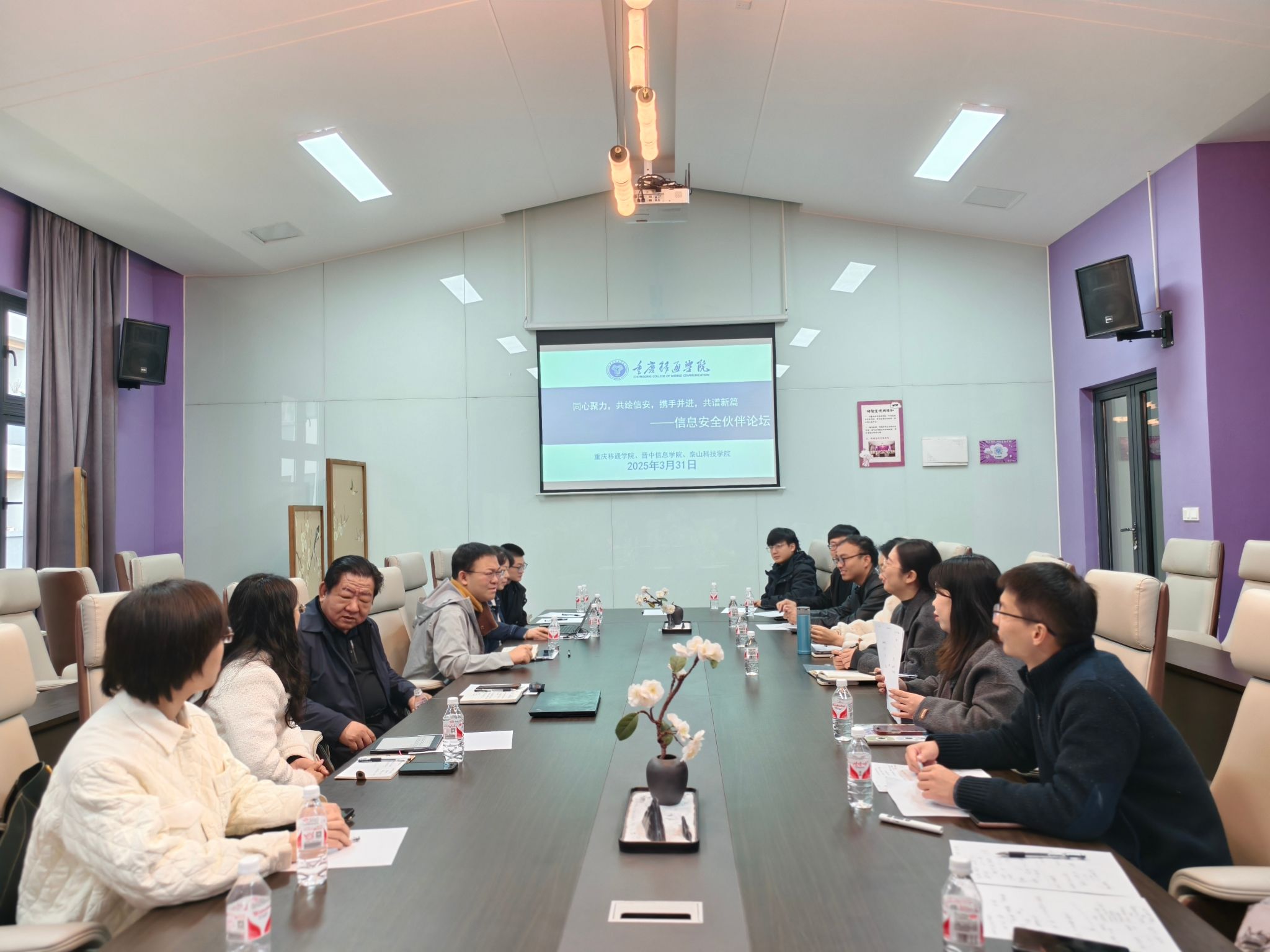 为深化产教融合、赋能信息安全人才培养,加强集团三校四区合作交流,3月31日,重庆移通学院、晋中信息学院、泰山科技学院三所高校联合发起的“同心聚力,共绘信安,携手并进,共谱新篇——信安安全伙伴论坛”在观云书院小雪会议室圆满结束。晋中信息学院学科带头人陈立潮、信息工程学院院长王龙、教学副院长杨倩倩、泰山科技学院大数据学院院长霍敏霞、网络教研室主任贾全秋、计算科学教研室主任光永星、信息科学教研室主任孙凤霄、重庆移通学院信息安全学院代理教学副院长周小艳、物联网教研室主任郑慧娟、软件教研室主任王燚以及多位三校骨干教师共同参与了本次论坛。