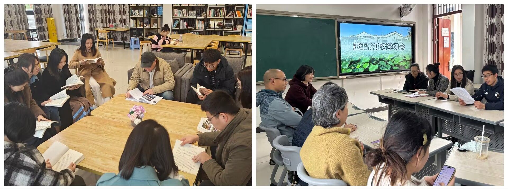 学院教工党支部全体党员集中学习“时代的召唤”与“培养懂专业、会管理的复合性应用型人才”两大篇章。张旭宁老师和杨加伟老师分别作主题发言,结合课程思政、人才培养模式、学生职业发展等,畅谈对书中育人理念的思考。与会党员通过互动交流,进一步明确以“党建引领专业建设、思政融入语言教学”的行动方向,凝聚了“为党育人、为国育才”的共识。