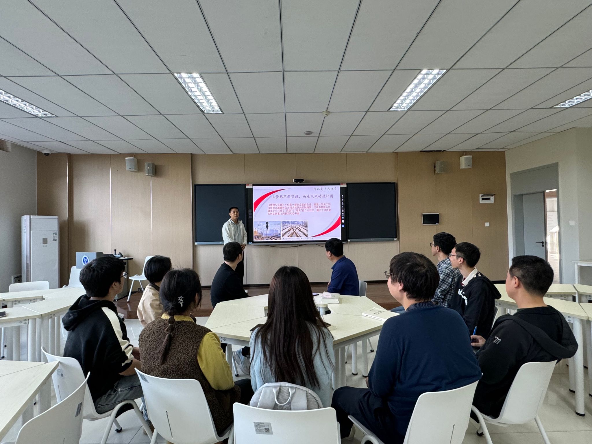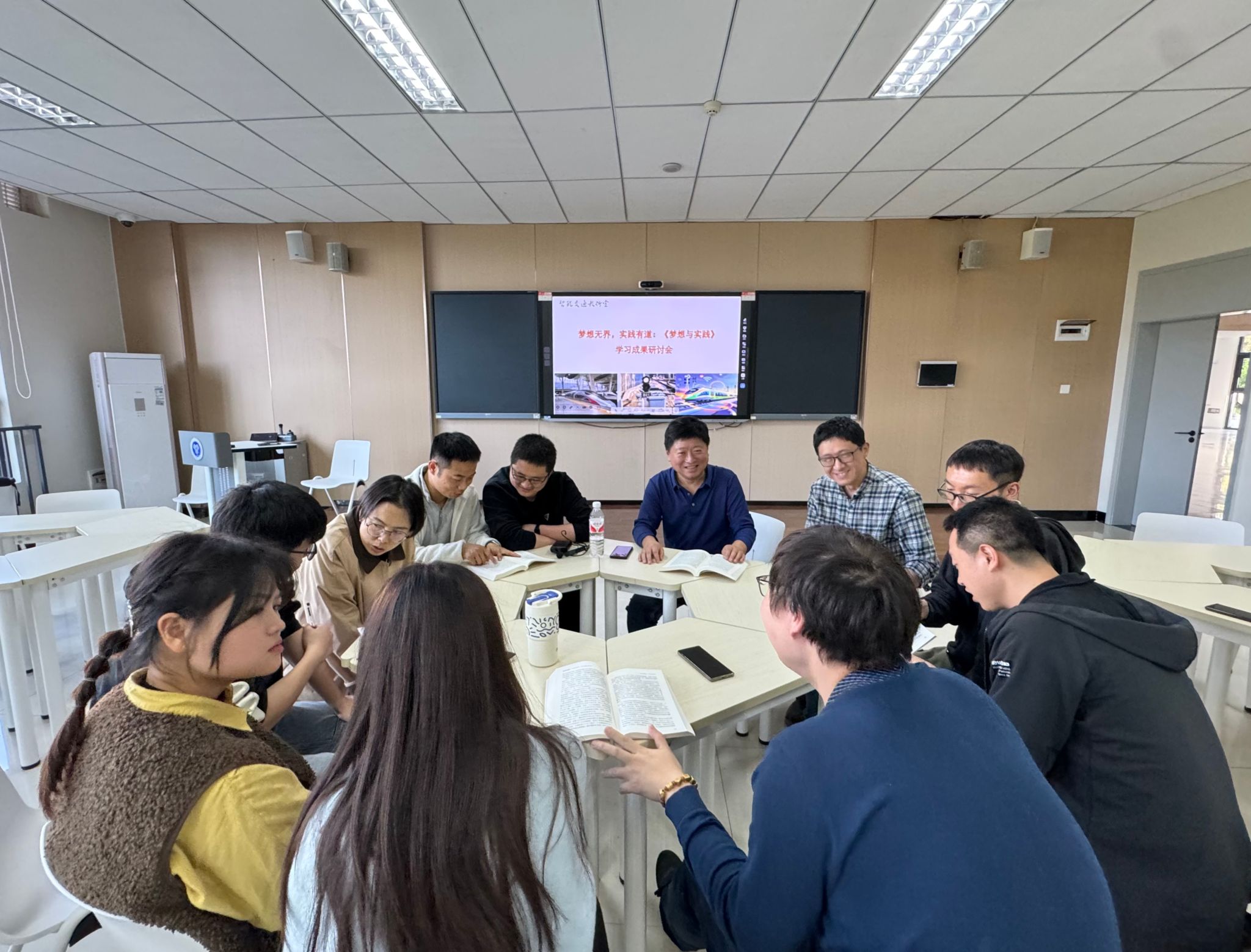 智能交通教研室在9112召开《梦想与实践》学习成果研讨会。全体教师围绕《梦想与实践》一书展开深入交流,结合教学、科研和育人实践,分享学习心得,探讨教育创新路径。教研室主任冯铁成老师首先指出,《梦想与实践》深刻阐述了教育理想与现实实践的辩证关系,强调教育工作者应当将远大理想与脚踏实地的实践相结合。随后,与会教师结合自身工作,展开热烈讨论。青年教师韩冰谈道:“教育不是灌输,而是点燃火焰。今后在课程中将积极尝试项目式教学,让学生以真实案例为课题,提升学习效果。”陈璐老师补充道:“董事长彭洪斌博士强调责任可以让我们把事情做完整,爱让我们把事情做得更好,这启发我在课堂中融入更多人文关怀,有意识地在课后与学生交流学习困惑,针对性地调整教学节奏,让知识传递更有温度。”