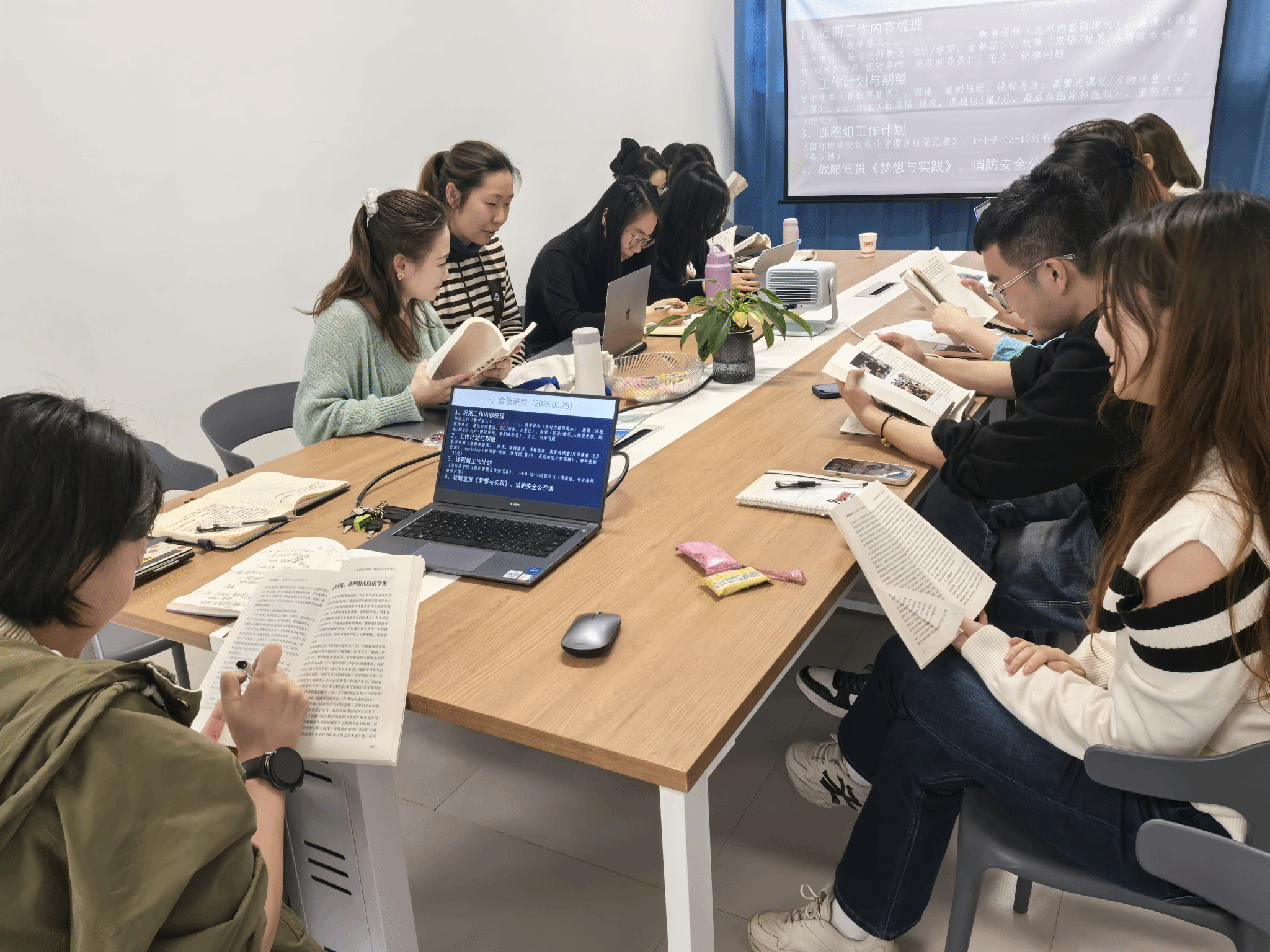 在李副院长的带领下,国际商学院的全体老师认真阅读了《梦想与实践》一书。彭鸿斌董事长以他丰富的实践经验和独到的见解,阐述了信息产业商学院的定位以及“四位一体双院制+特色课程”的人才培养模式。这些理念让老师们深受启发,为他们的教学工作提供了新的思路和方向。