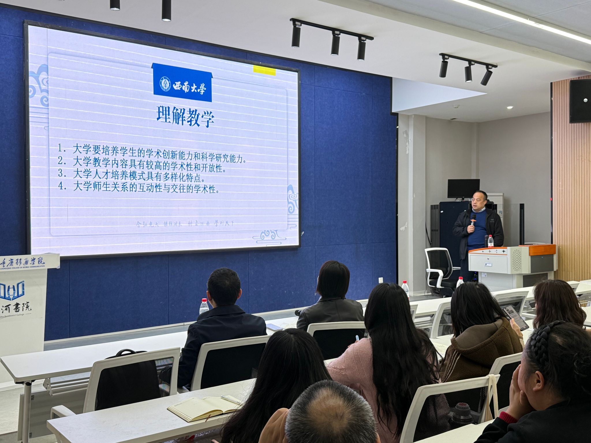 为加强师资队伍建设,提升青年教师教学水平,2025年4月2日,重庆移通学院数字经济与信息管理学院特邀西南大学教育学部田晓伟教授在綦河书院观涛·多功能报告厅作题为“从人才培养谈青年教师教学能力提升”的专题讲座。重庆移通学院副校长王永周,数字经济与信息管理学院院长刘贵容,及教师代表共同参与学习。