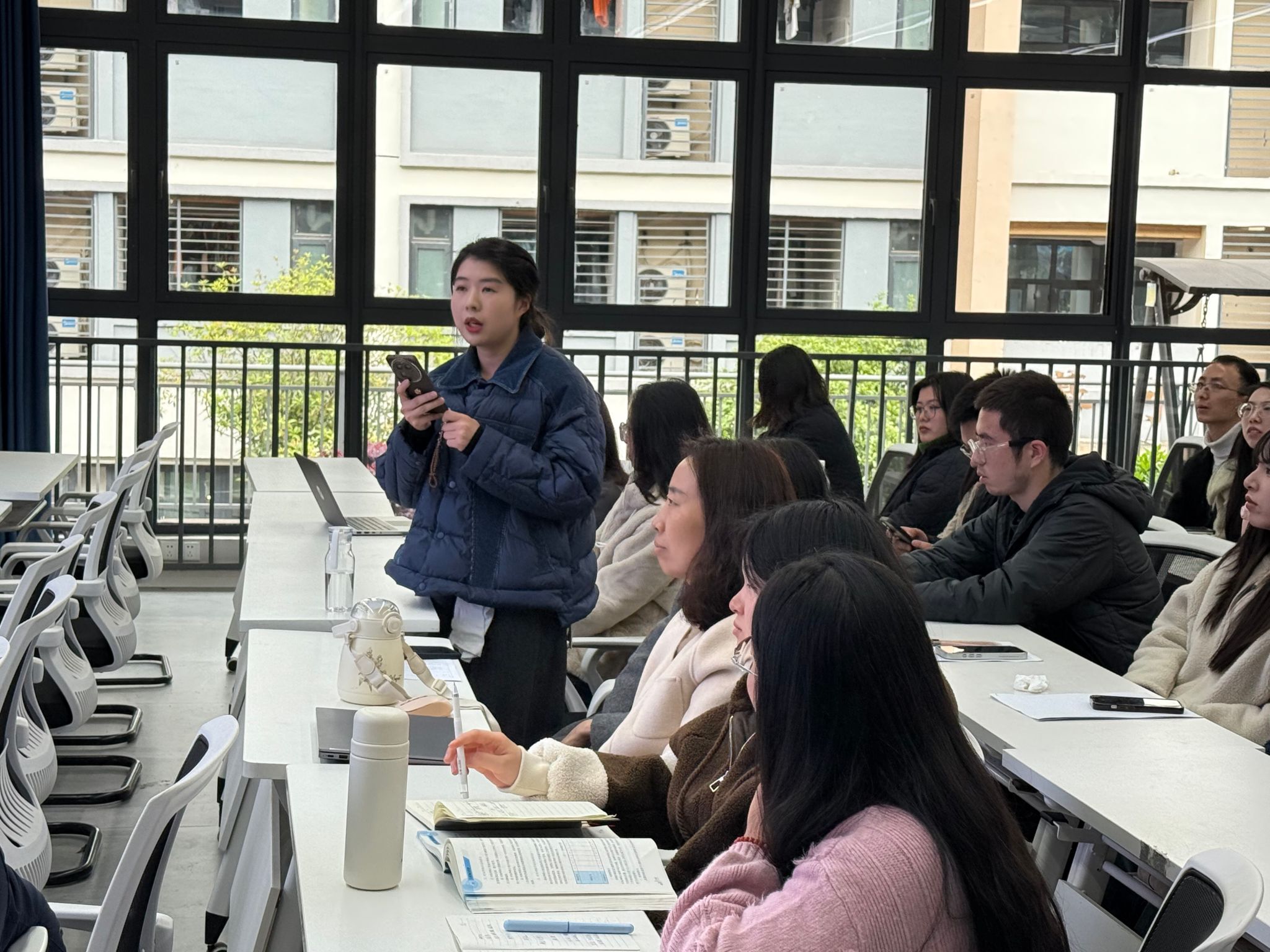 在交流环节,供应链教研室戴阿男老师就“如何在教学过程中实现教师自身发展”向田教授请教。田教授建议青年教师“多学习、多实践、多参赛”,积极参与教学竞赛,借助AI技术提升教学效率,并在团队协作中加速成长。