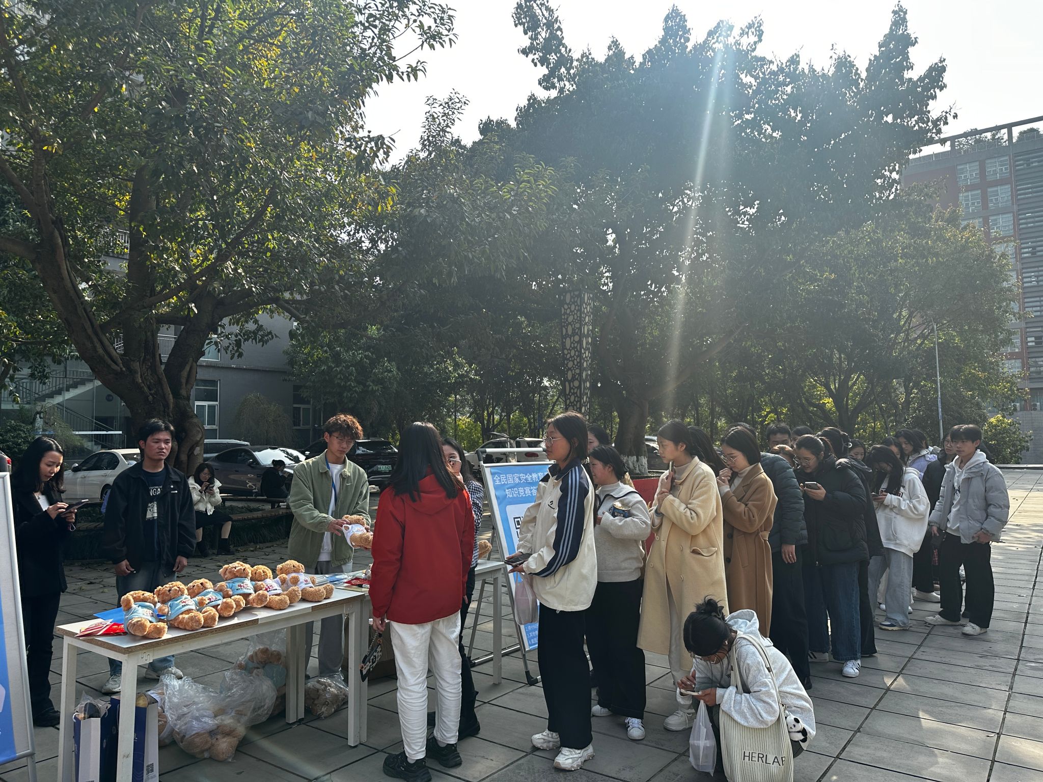 各位嘉宾致辞结束后,主持人引导师生们前往观看国家安全教育主题展览,学习国家安全知识,签署承诺书,并发放《中华人民共和国国家安全法》、2025年全民国家安全宣传册;现场还设置了“全民国家安全教育知识竞赛答题”区域,各位参与者可通过扫码答题凭借分数领取不同的礼品,师生们踊跃参与,现场气氛非常火热,营造了浓厚的国家安全学习氛围,大大增加了同学们国家安全的知识储备。