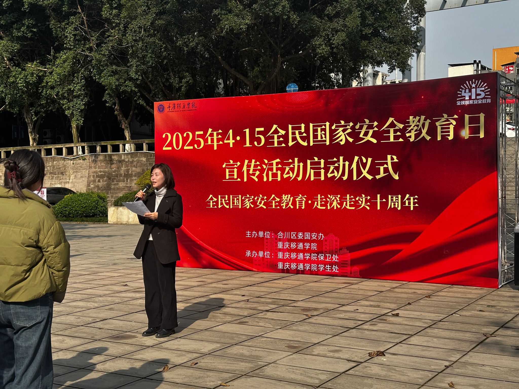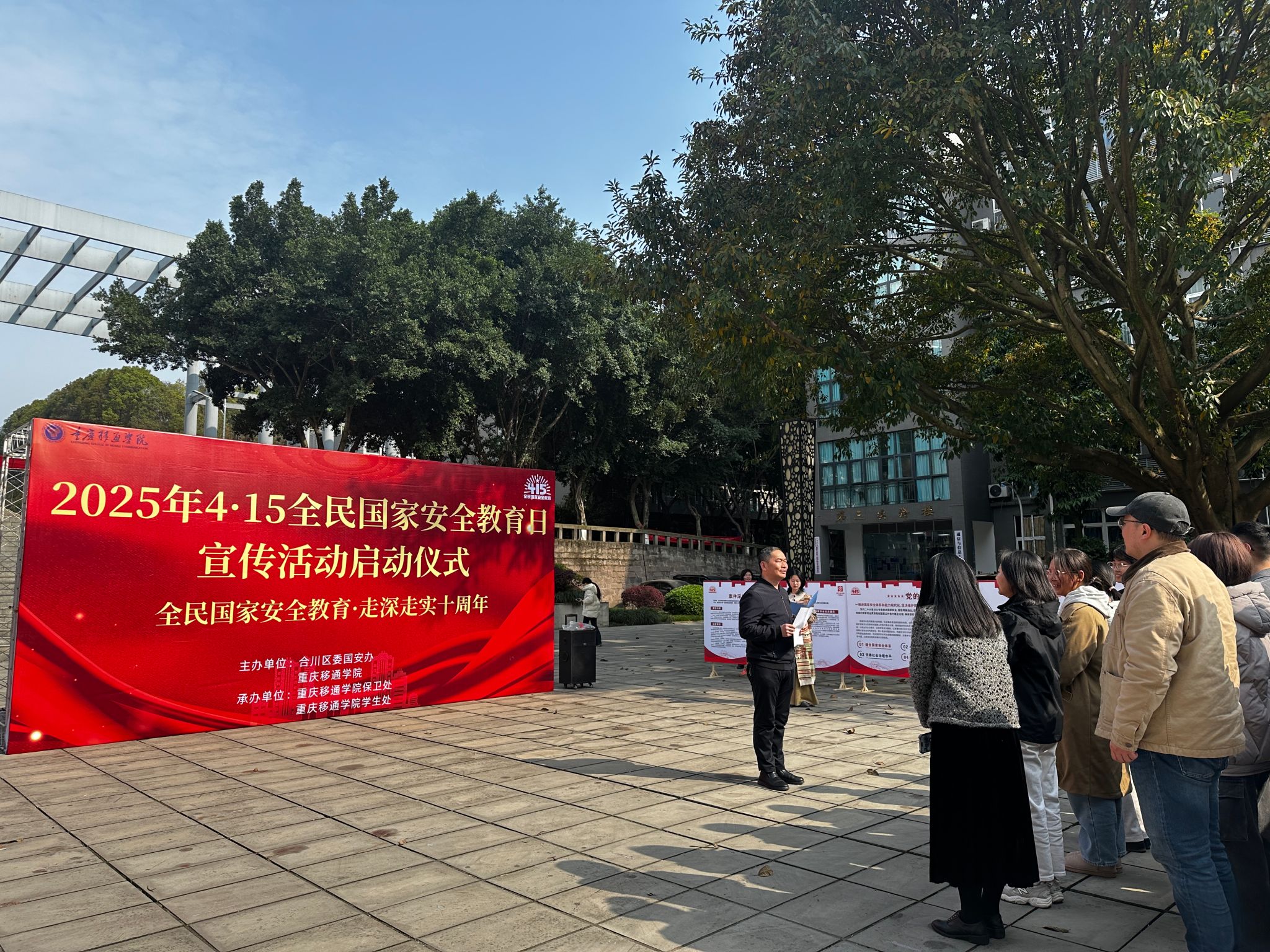 2025年是《中华人民共和国国家安全法》颁布施行10周年,今年的4月15日也是第十个全民国家安全教育日。为了全面营造天天都是“4·15”浓厚氛围,持续打造“争当红岩先锋·维护国家安全”品牌,扎实推动“大安全”理念深入人心,不断夯实国家安全和社会稳定基层基础,由合川区委国安办指导,保卫处、学生处联合主办的“全民国家安全教育,走深走实十周年”全民国家安全教育日宣传活动启动仪式于4月2日下午15:30在黄桷树广场举行,共同在此启动全民国家安全教育月。