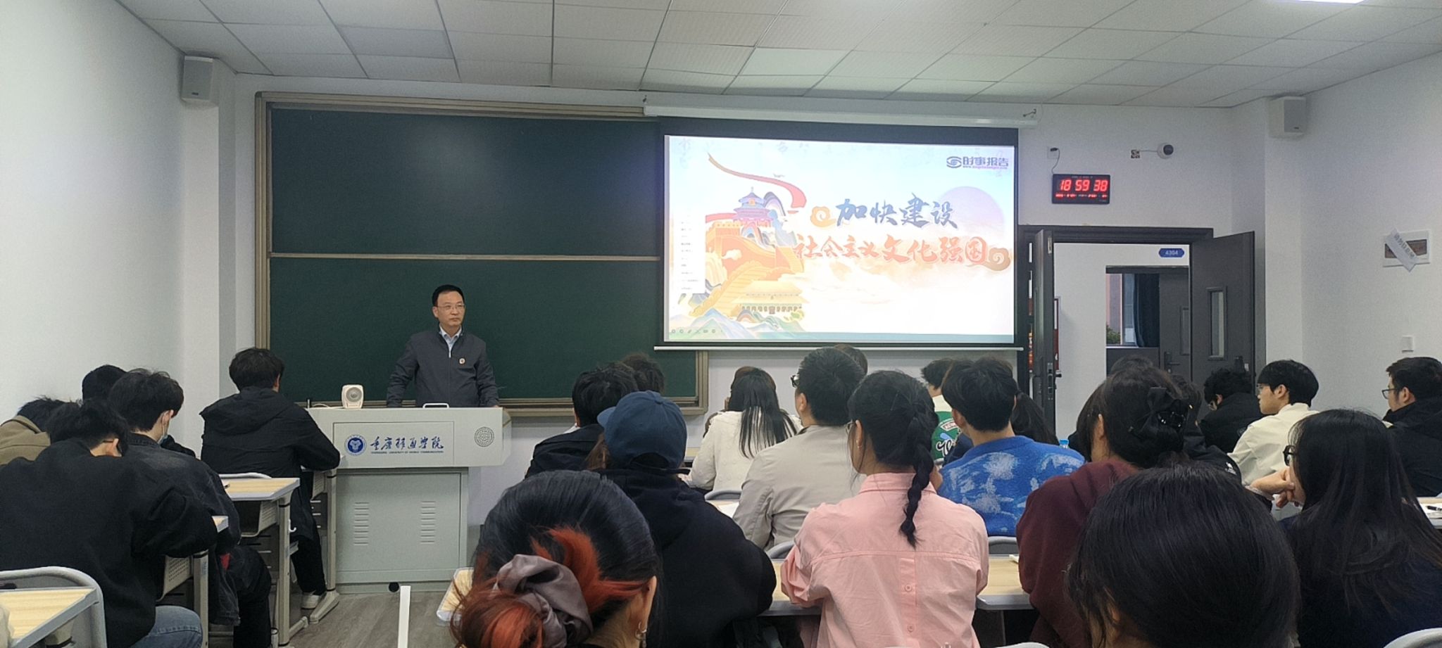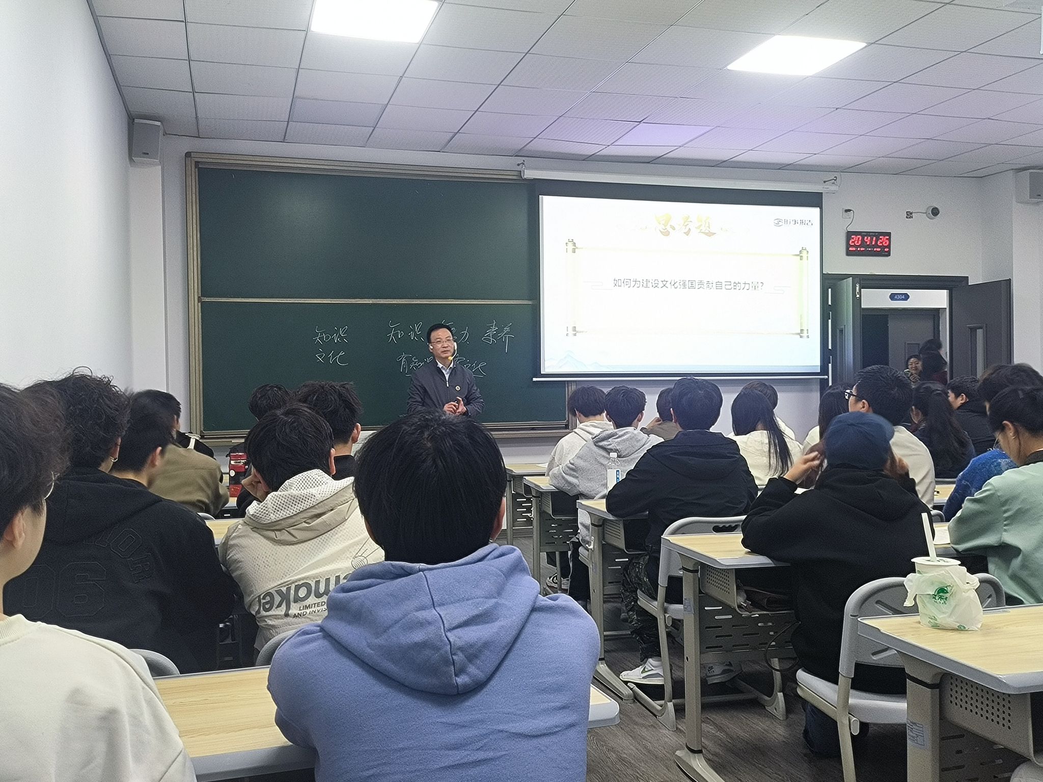 为深入学习贯彻落实党的二十届三中全会精神和习近平总书记对学校思政课建设的重要指示精神,进一步提升思政课教学质量,落实立德树人根本任务,发挥领导干部示范引领作用,3月24日,校长吕翊教授走进课堂,为2024级工商管理物流5-6班的同学们带来了一堂题为“加快建设社会主义文化强国”的精彩思政课。