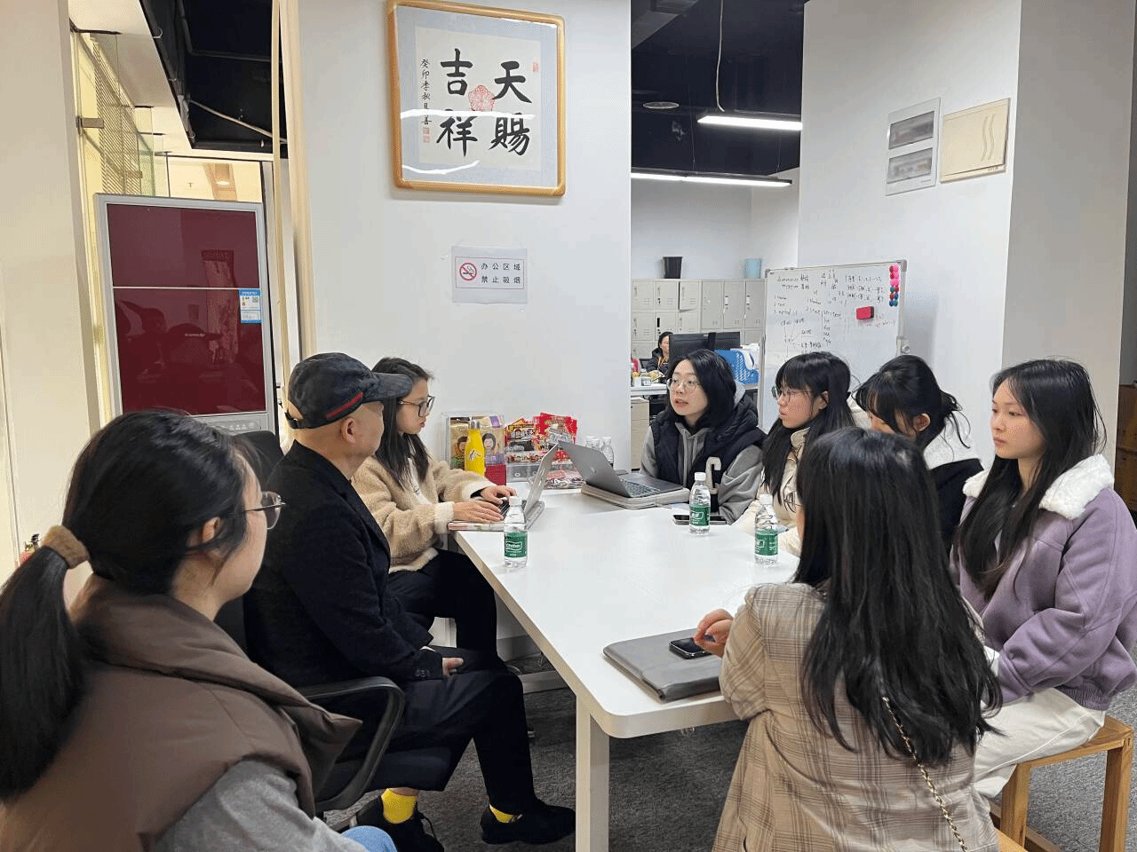 在参访过程中,师生团队与陆稿荐公司向总围绕品牌转型、市场拓展等议题展开深入交流。《新媒体时代的品牌和管理》课程组从品牌定位、社交媒体营销等角度提出建议,强调通过年轻化包装、短视频内容创作等方式触达Z世代消费者;《信息产业企业投融资管理》课程组则探讨从资本运作、线上渠道布局等层面分析了企业扩大发展的可能性。