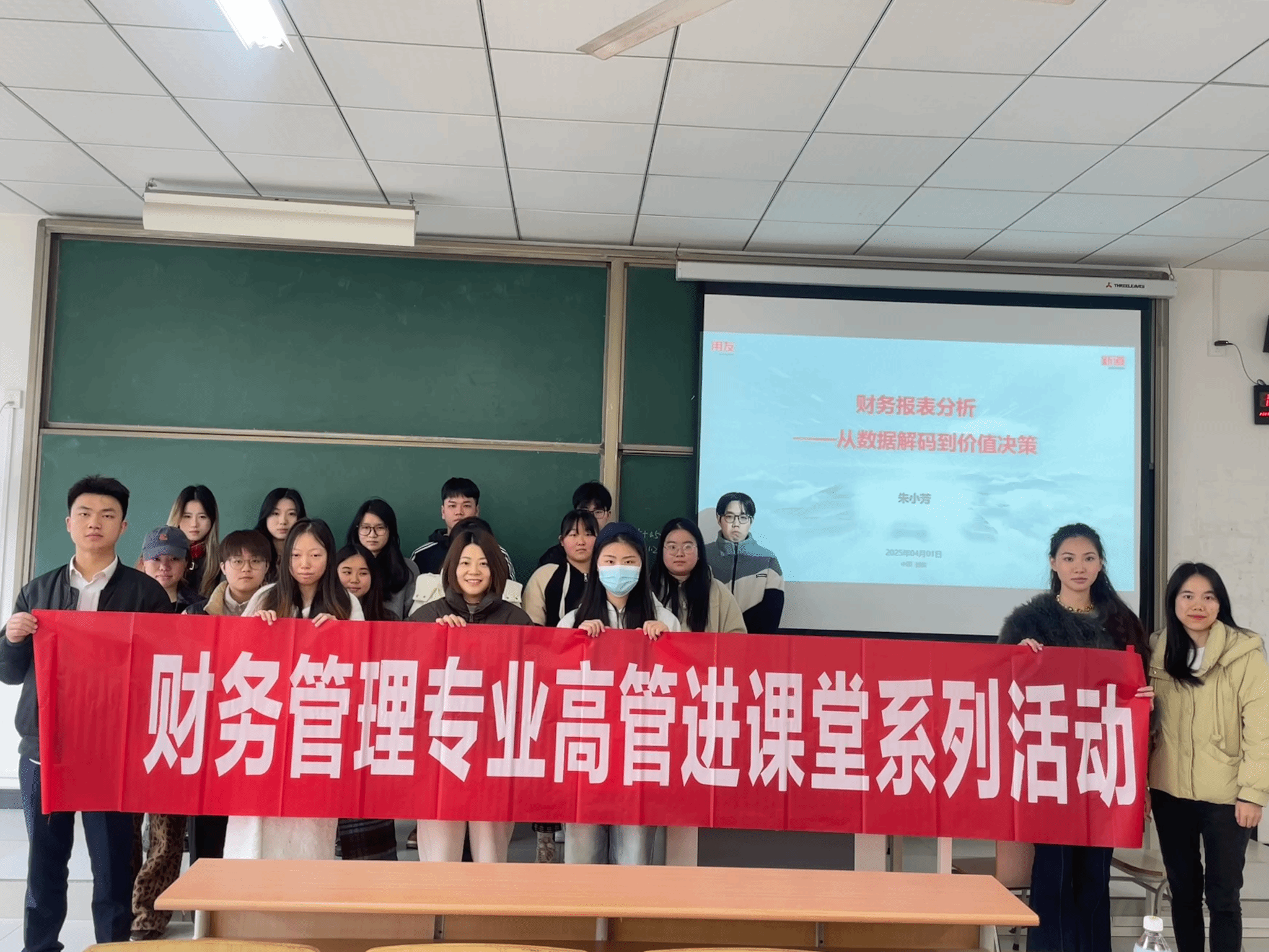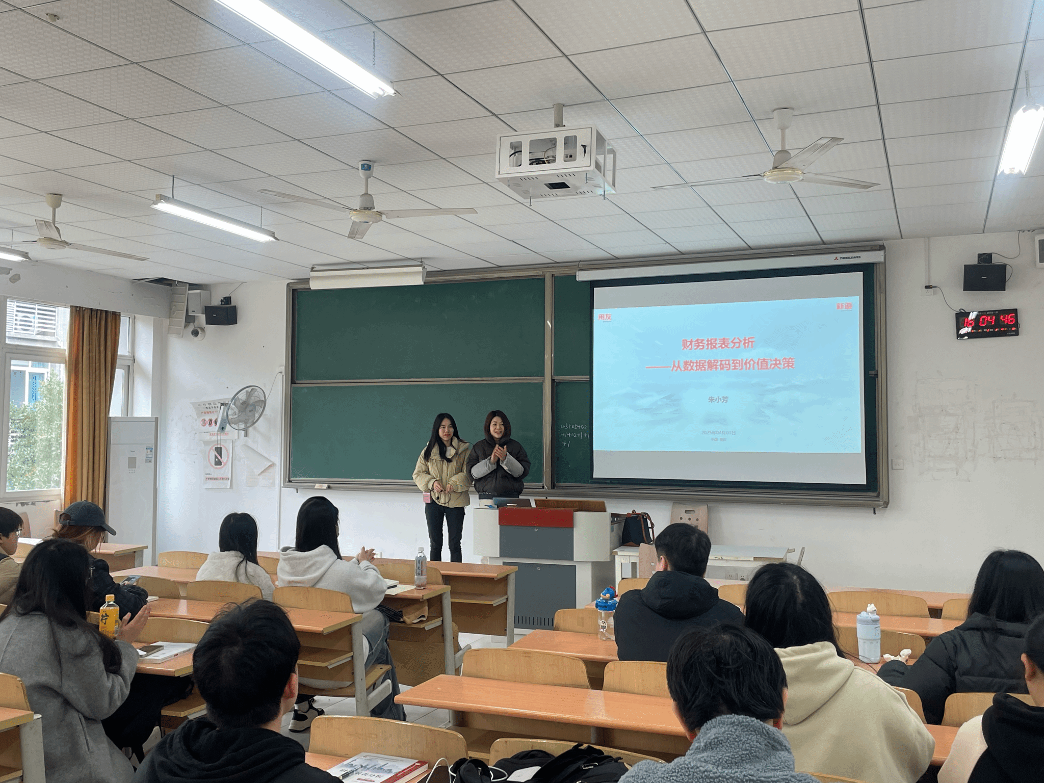 4月1日,财务管理教研室开展了一场“高管进课堂”活动,邀请新道科技股份有限公司技术总监朱小芳,为学生们带来了一场主题为“财务报表分析——从数据解码到价值决策”的精彩分享。此次活动不仅为学生们提供了与企业高管面对面交流的机会,更让他们深入领略了财务报表分析的魅力与实战价值。
