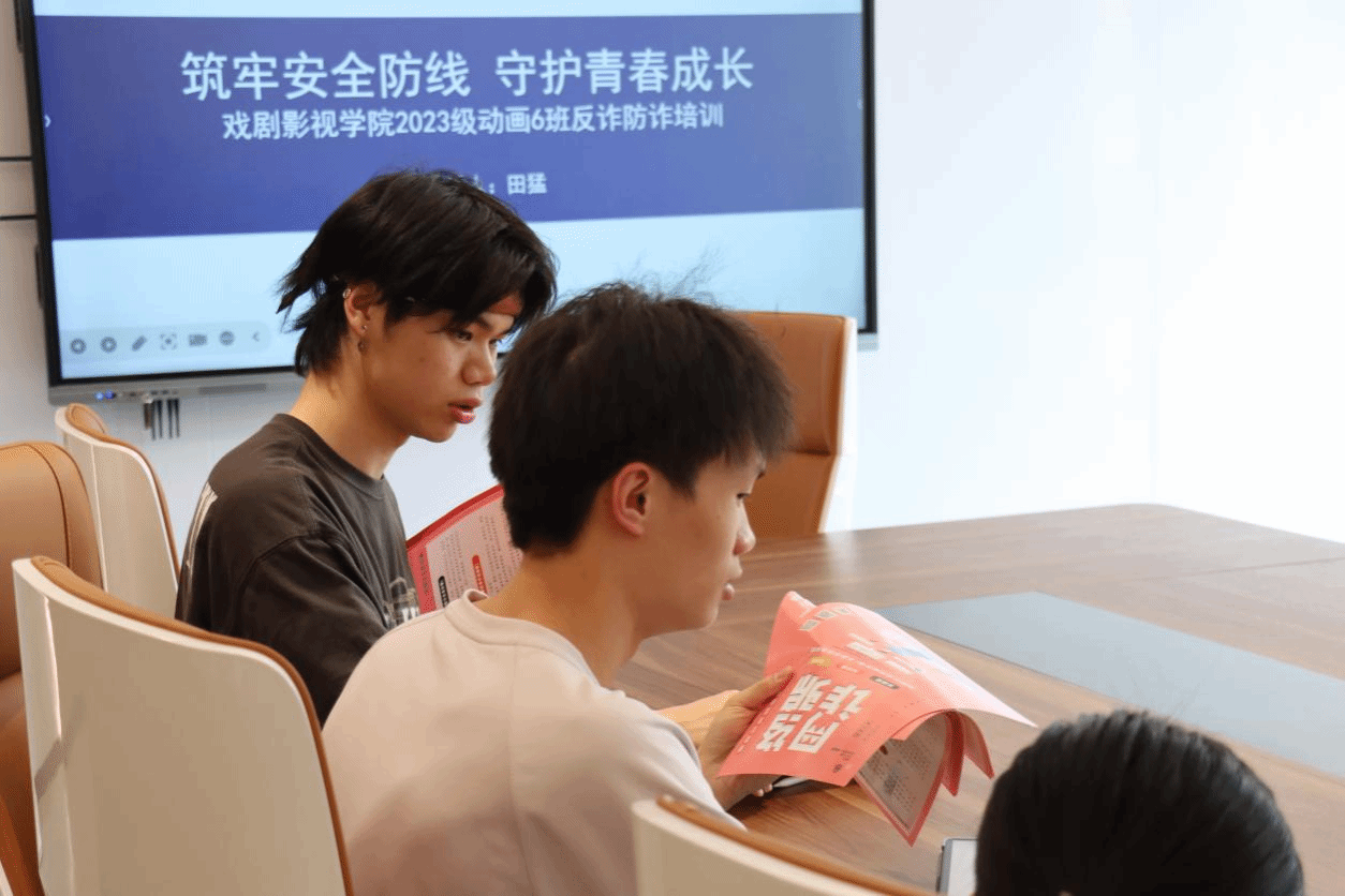 4月8日下午,在明善图书馆207会议室,一场别开生面的安全教育课正在进行。为增强学生安全意识,提升防诈能力,綦江校区学生处专任教师、戏剧影视学院动画6班和7班异科导师田猛,结合自身专项工作背景,为35名异科班同学带来了一场“反诈防诈+国家安全”专题培训。