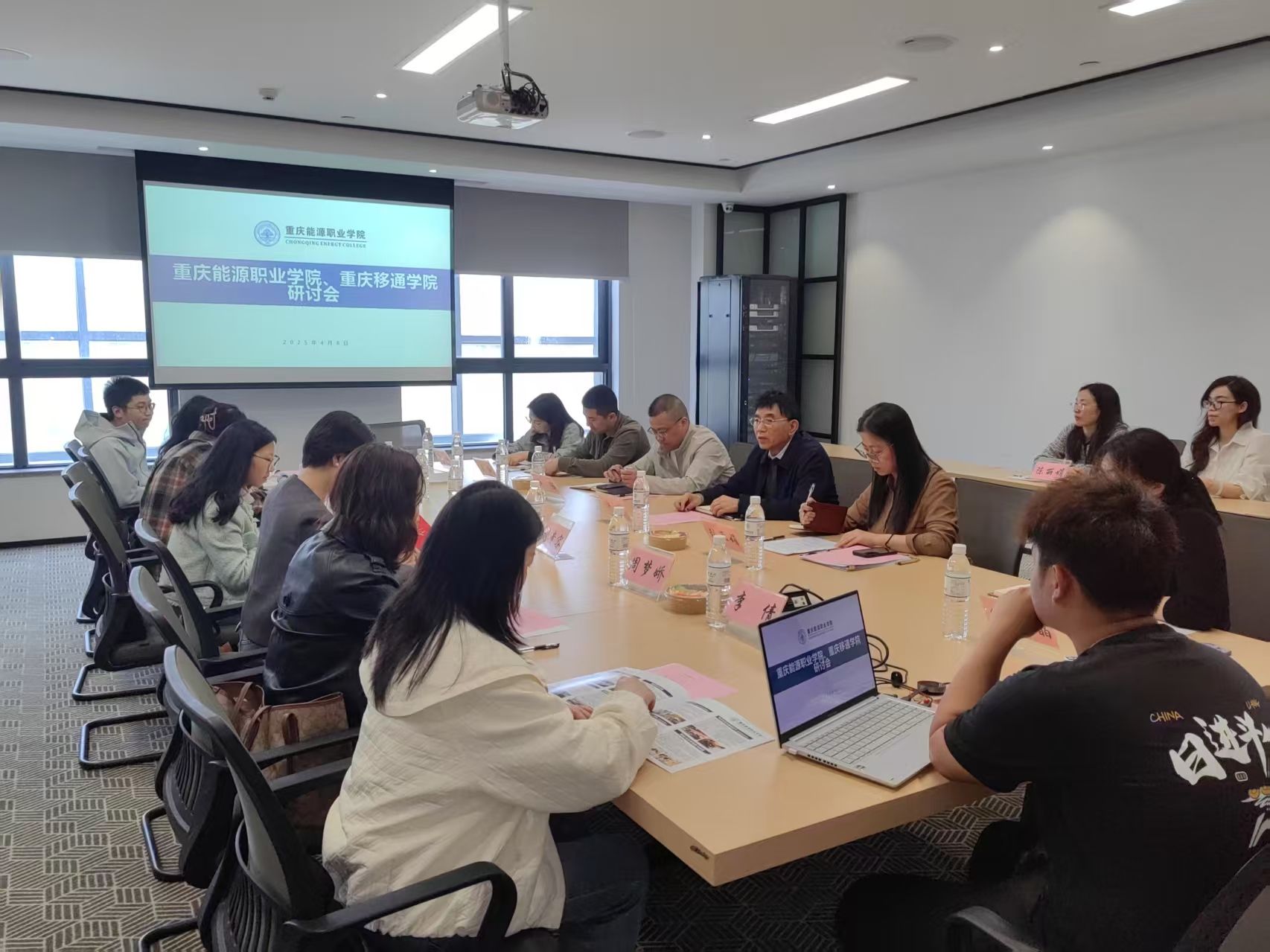 2025年4月8日下午14:00,在刘贵容院长的带领下,数字经济与信息管理学院一行来到了重庆能源职业学院进行交流,能源学院参会人员有副校长许行,招生处长赵强,城市建设学院院长刘亚娟及相关骨干教师。会议由刘亚娟院长主持,许校长首先对重庆移动学院数字经济与信息管理学院一行表示了热烈的欢迎。