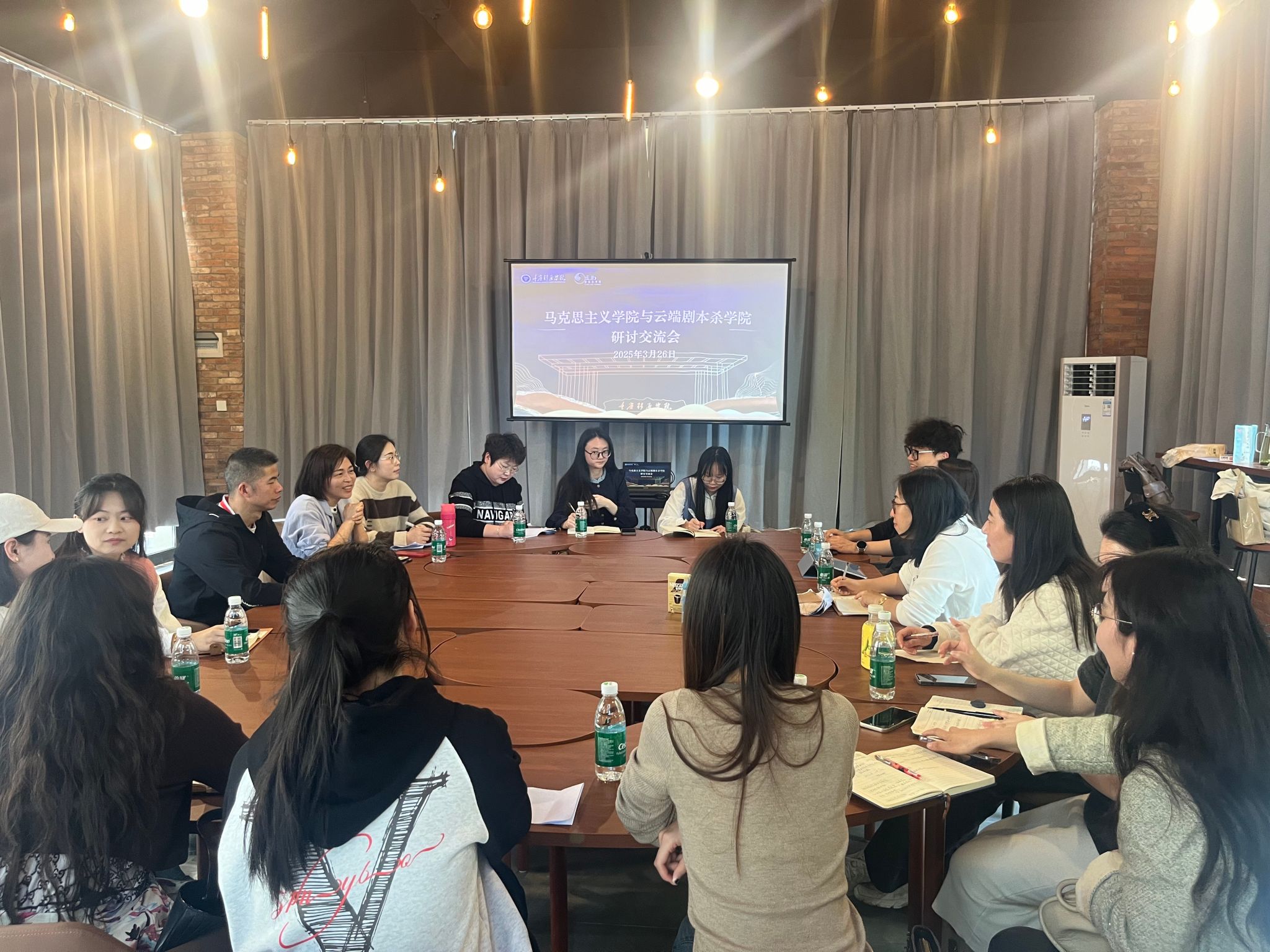 3月26日,马克思主义学院与云端剧本杀学院于北校区廊桥苑开展了深度交流会,一起探索思想政治教育与剧本杀的跨界融合路径。马克思主义学院思想道德与法治教研室和云端剧本杀学院的全体老师们共同出席,会议由陈静老师主持。双方围绕课程共建、红色文化传播等议题展开研讨。