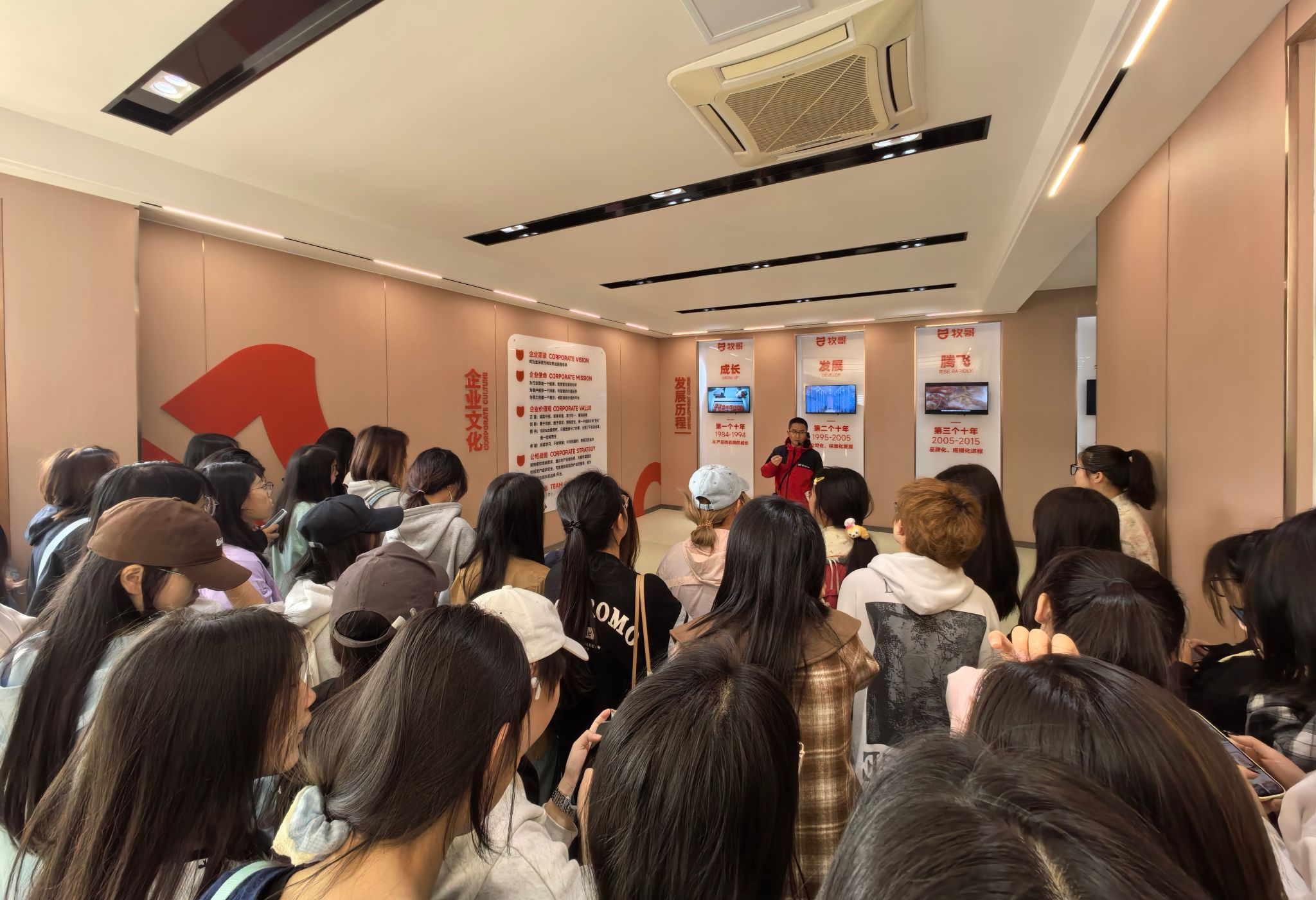 在重庆牧哥食品有限公司文化展厅,企业代表向师生们系统讲解了“质造中国好底料”的企业愿景与“传承火锅文化”的使命担当。讲解员特别强调,这一理念既是企业对产品质量的坚守,更是对消费者的郑重承诺。互动环节中,同学们围绕企业价值观、管理实践等踊跃提问,企业代表结合实例详细解答,生动阐释了企业文化在经营管理中的核心作用。