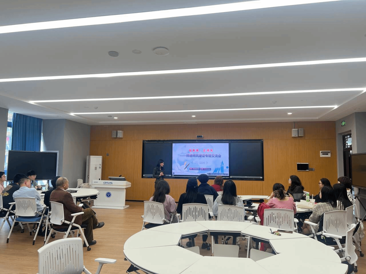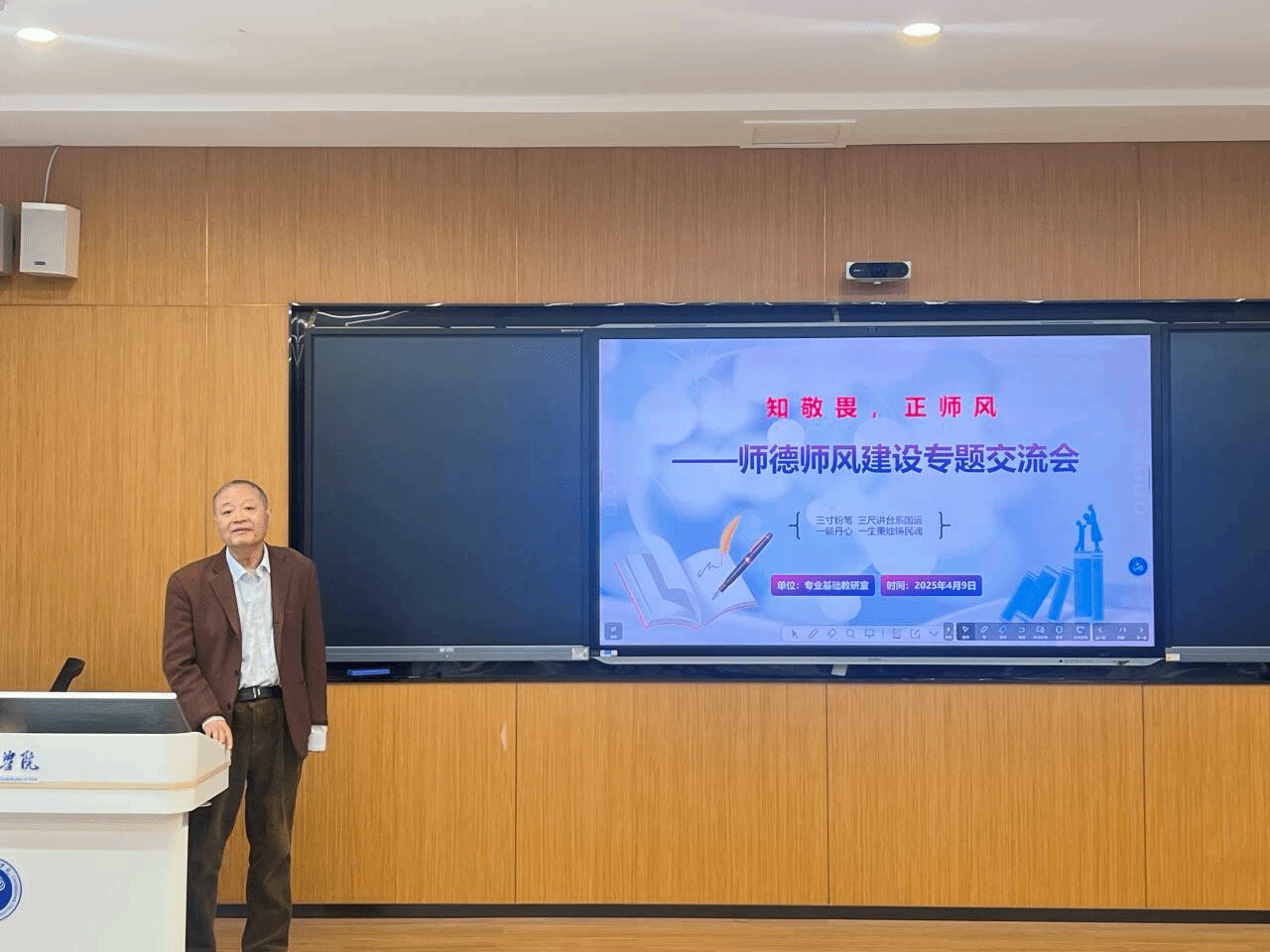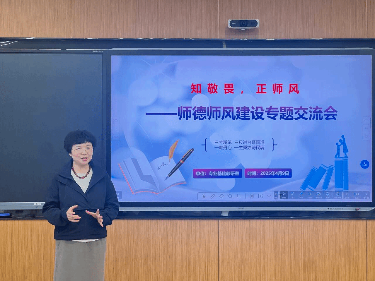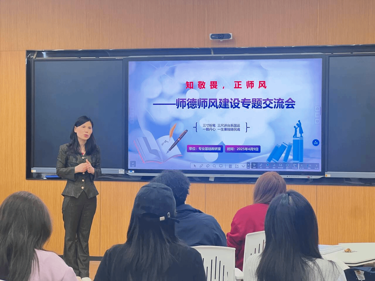 为深入贯彻落实新时代教师职业行为准则,提升教师队伍职业素养,4月9日,通信与信息工程学院专业基础教研室在天空书院301智慧教室举办了“师德师风建设专题交流会”活动。本次交流会由专业基础教研室主任赵瑞玉主持,教研室全体教师参加。活动围绕“以敬畏之心恪守教育初心”核心议题展开深入探讨,通过"问题查摆-经验共享-整改提升"的闭环模式,推动师德师风建设走深走实。