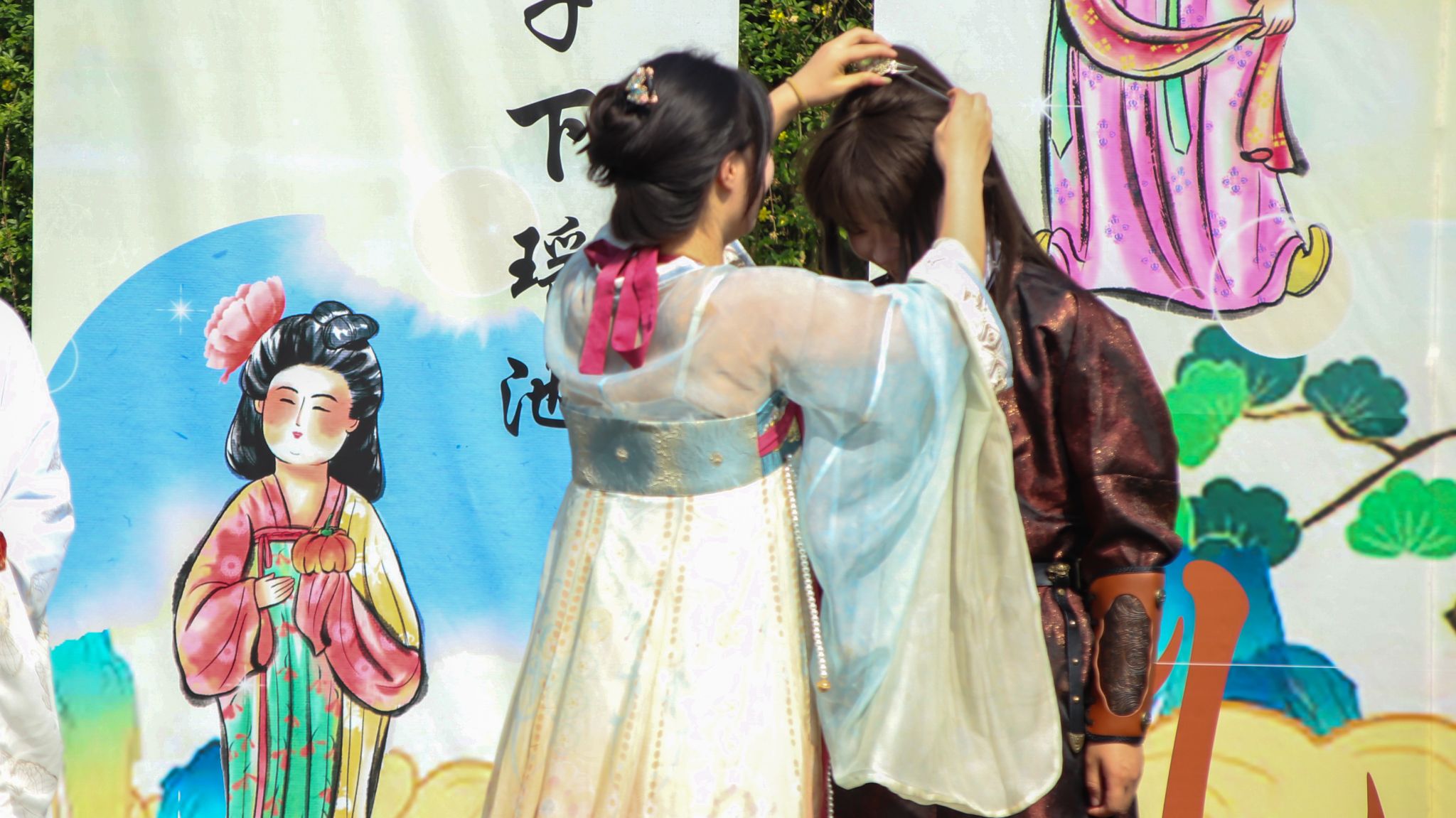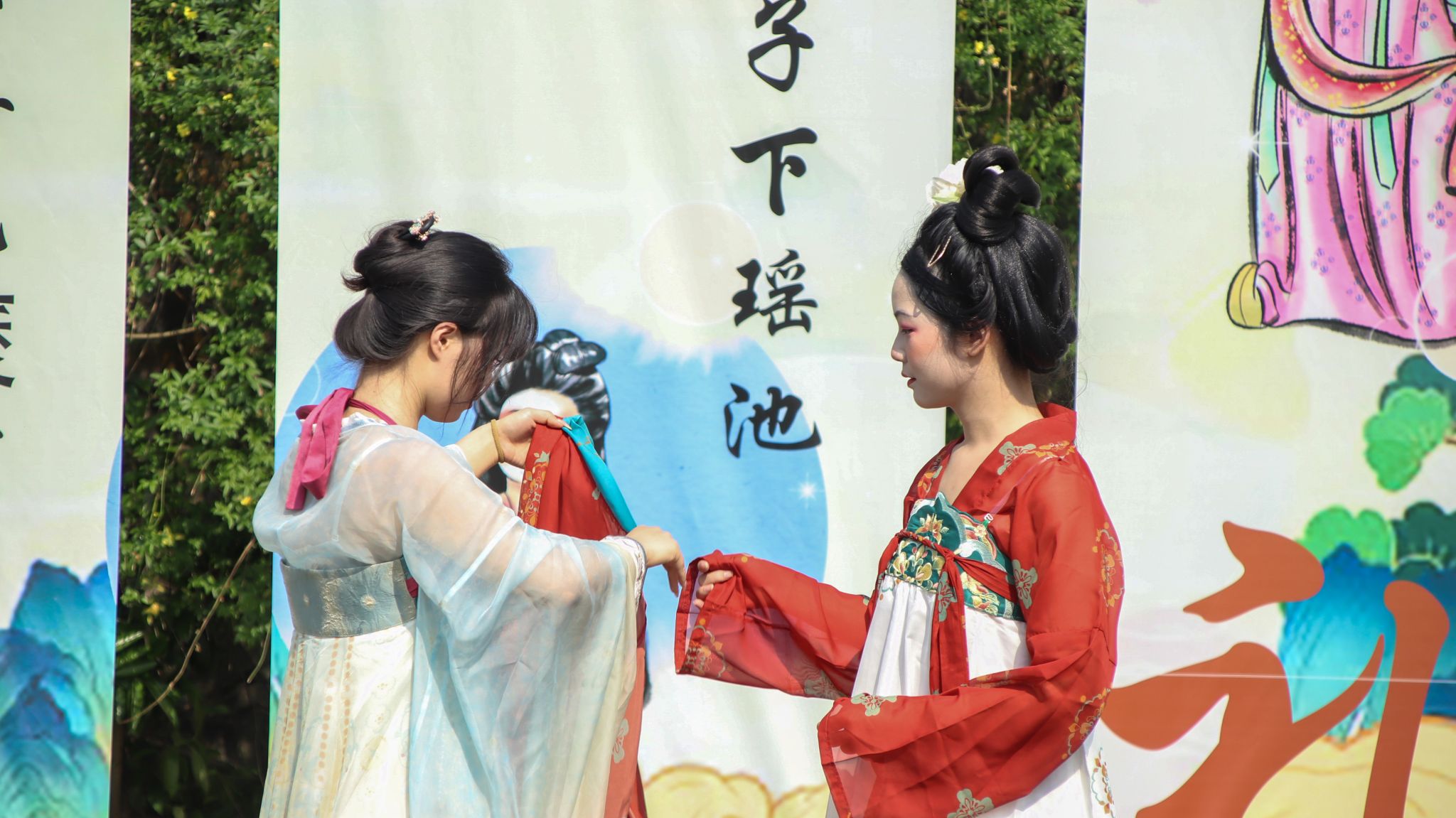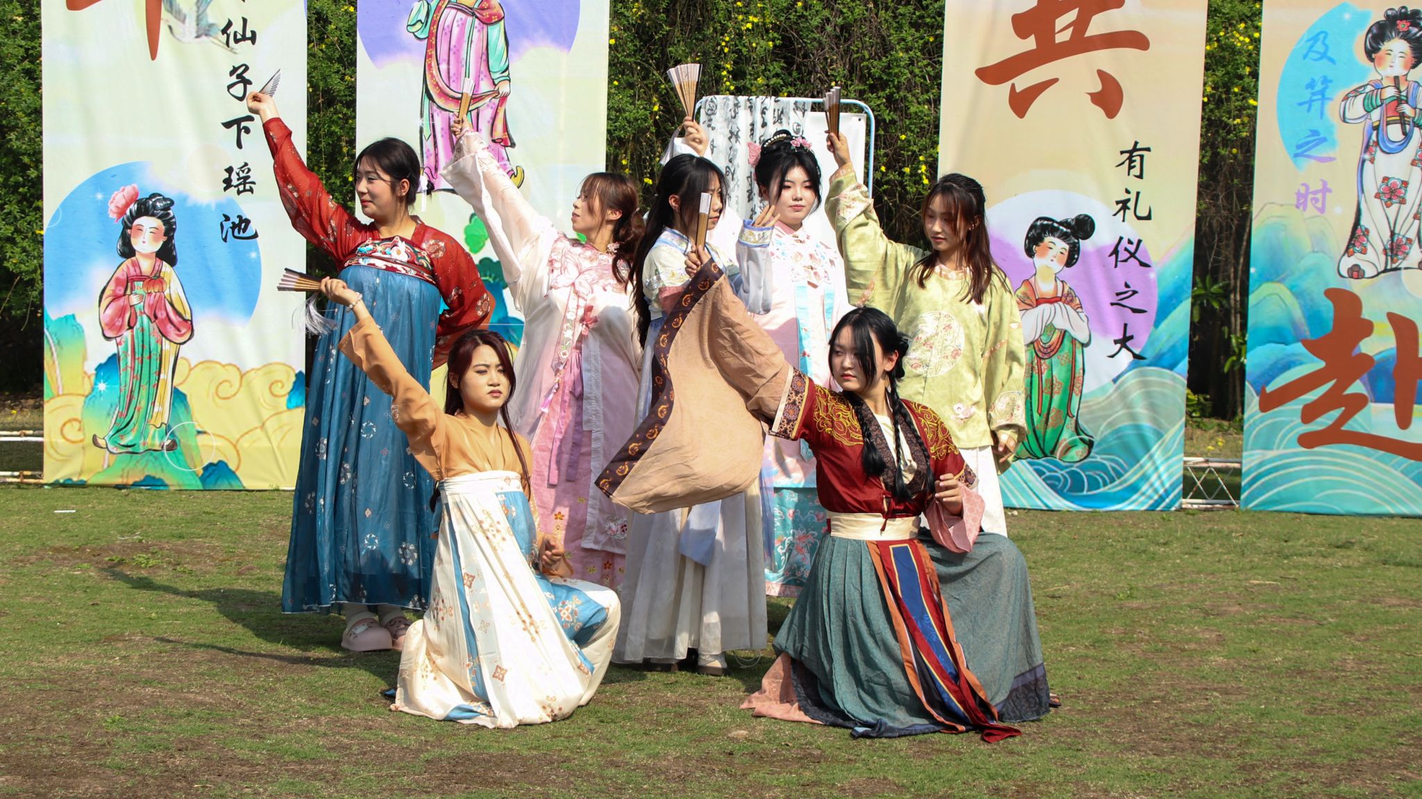 2025 年 4 月 9 日 14 时 30 分,华韵汉服协会在重庆移通学院双子湖草坪举办了一场别开生面的成人礼暨国风雅集活动。此次活动旨在让大学生深刻认识中华传统文化的重要性,使学生们于活动中接受传统文化熏陶,了解冠礼以及笄礼相关文化。众多学生齐聚于此,共同见证这场传统与青春激情碰撞、交相辉映的文化盛宴。