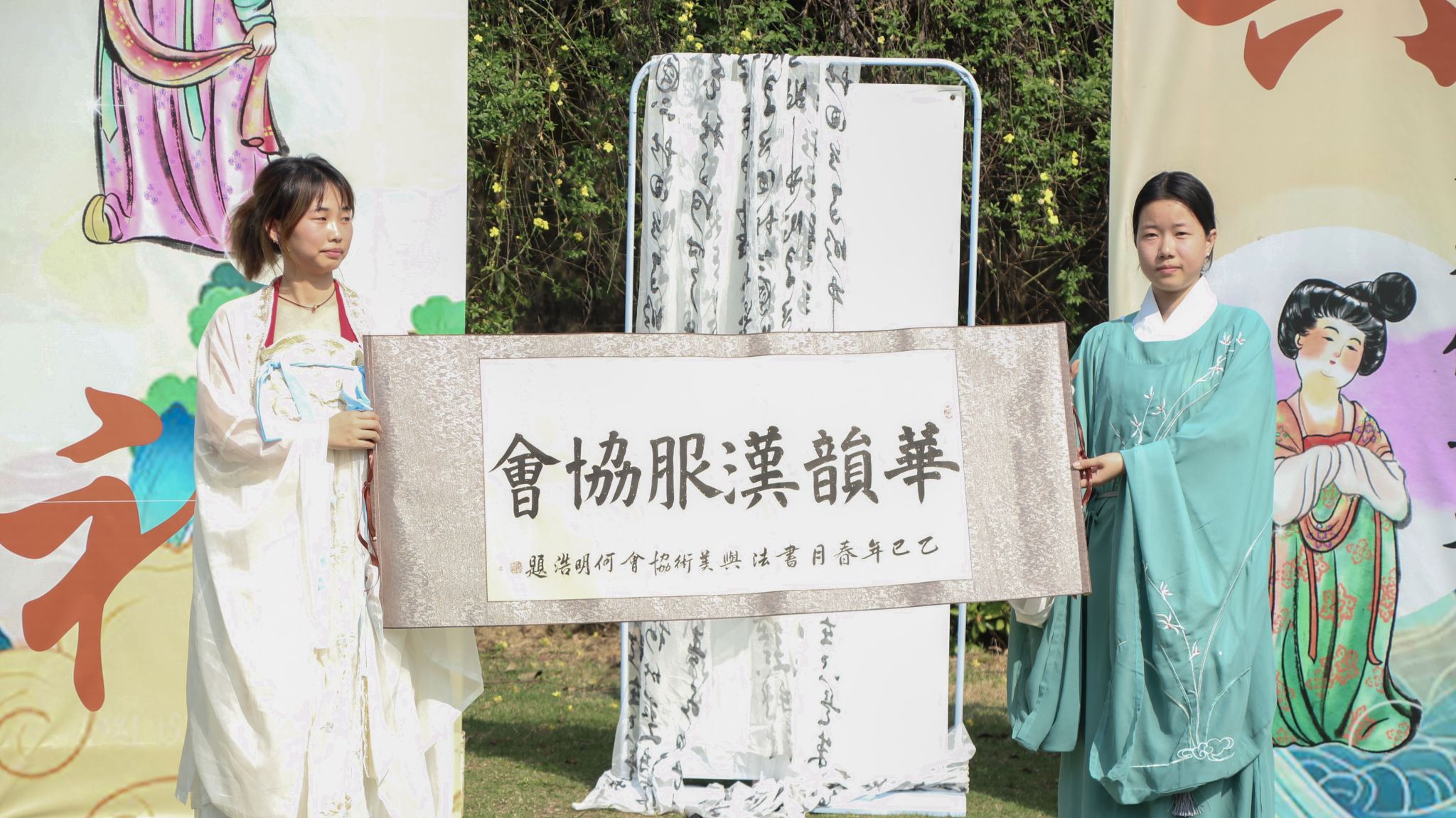 经典朗诵环节将活动推向又一高潮。全体参与学生齐声诵读《大学》节选,朗朗书声中,传统文化的智慧与力量悄然传递。紧接着,书法与美术协会笔走龙蛇,墨香四溢,题字尽显古韵今风;舞蹈协会《寄明月》灵动飘逸,裙袂飞扬,以曼妙舞姿舞出青春风采。