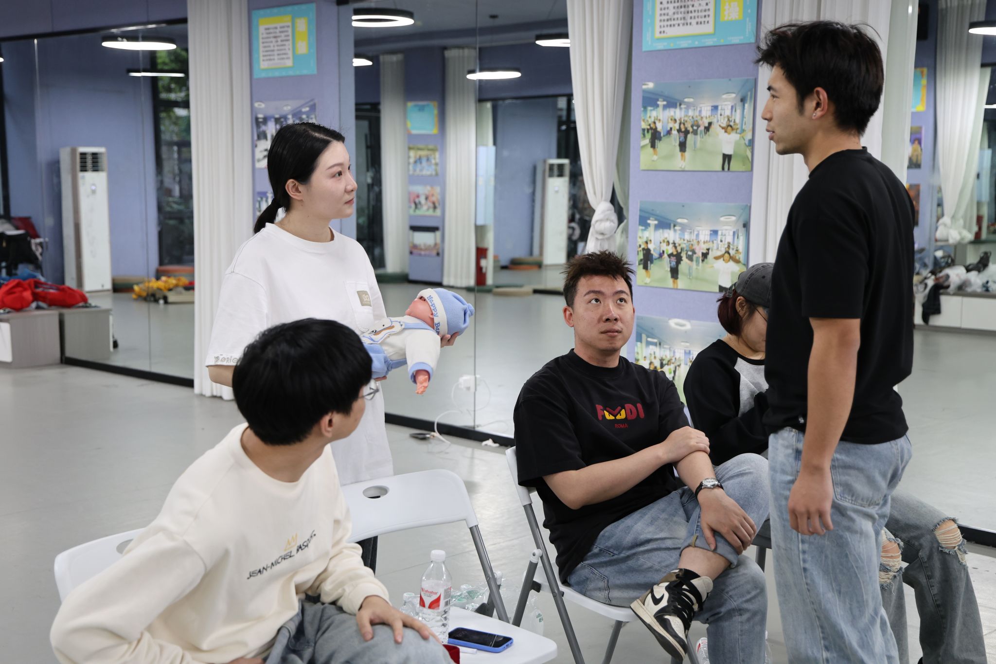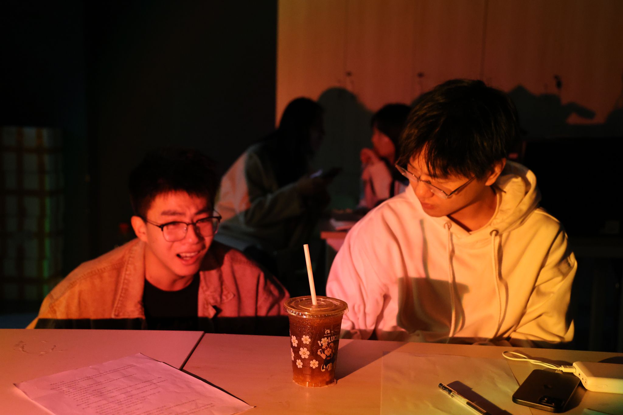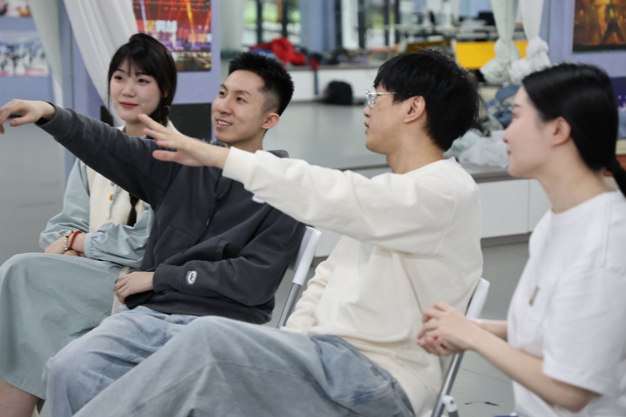 4月9日14:00,作为大演前的最后一次通排,学院邀请演绎天花板店家“诡扯沉浸剧场”走进瀛溪书院伴舞排练厅,从角色塑造、情感爆发到场景调度等方面进行专业指导,并传授相关剧本演绎经验。指针划过凌晨4点,校园早已沉睡,而排练厅却亮如白昼,同学们挥洒热情和汗水,只为给玩家带来最好的体验。