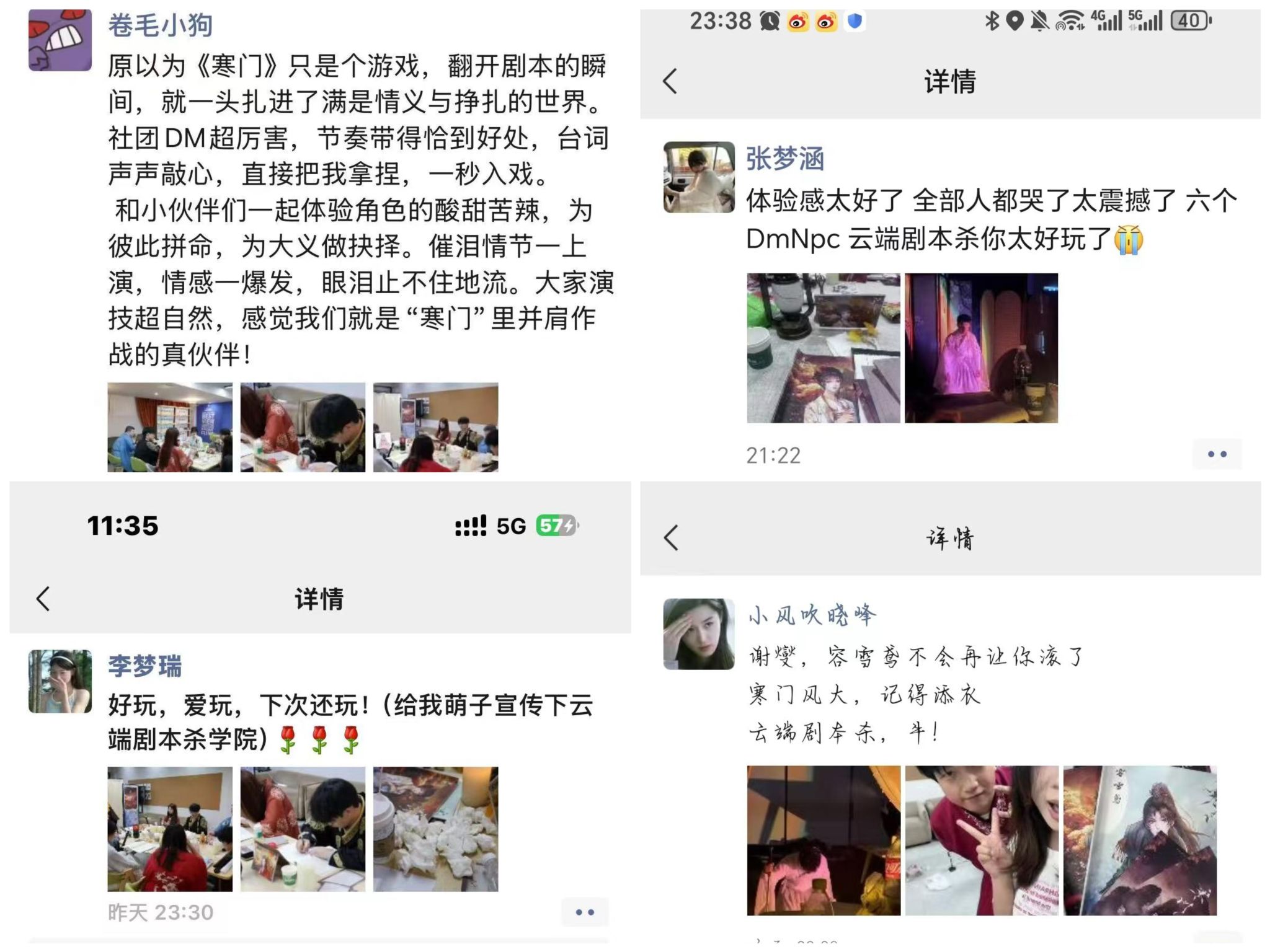 4月13日14:00,南江书院慥慥·智慧交流聚场内,大型古风情感演绎本《寒门》震撼登场。DM 与 NPC 凭借细腻入微的情感诠释,将剧本中的情节与人物刻画得栩栩如生。谢燮和容雪鸢纯真却又令人揪心的爱情,师父徐逢春对弟子无微不至的爱护,萱萱一路走来的成长蜕变......都深深触动着同学们的内心,引得同学们情感爆发,沉浸痛哭。