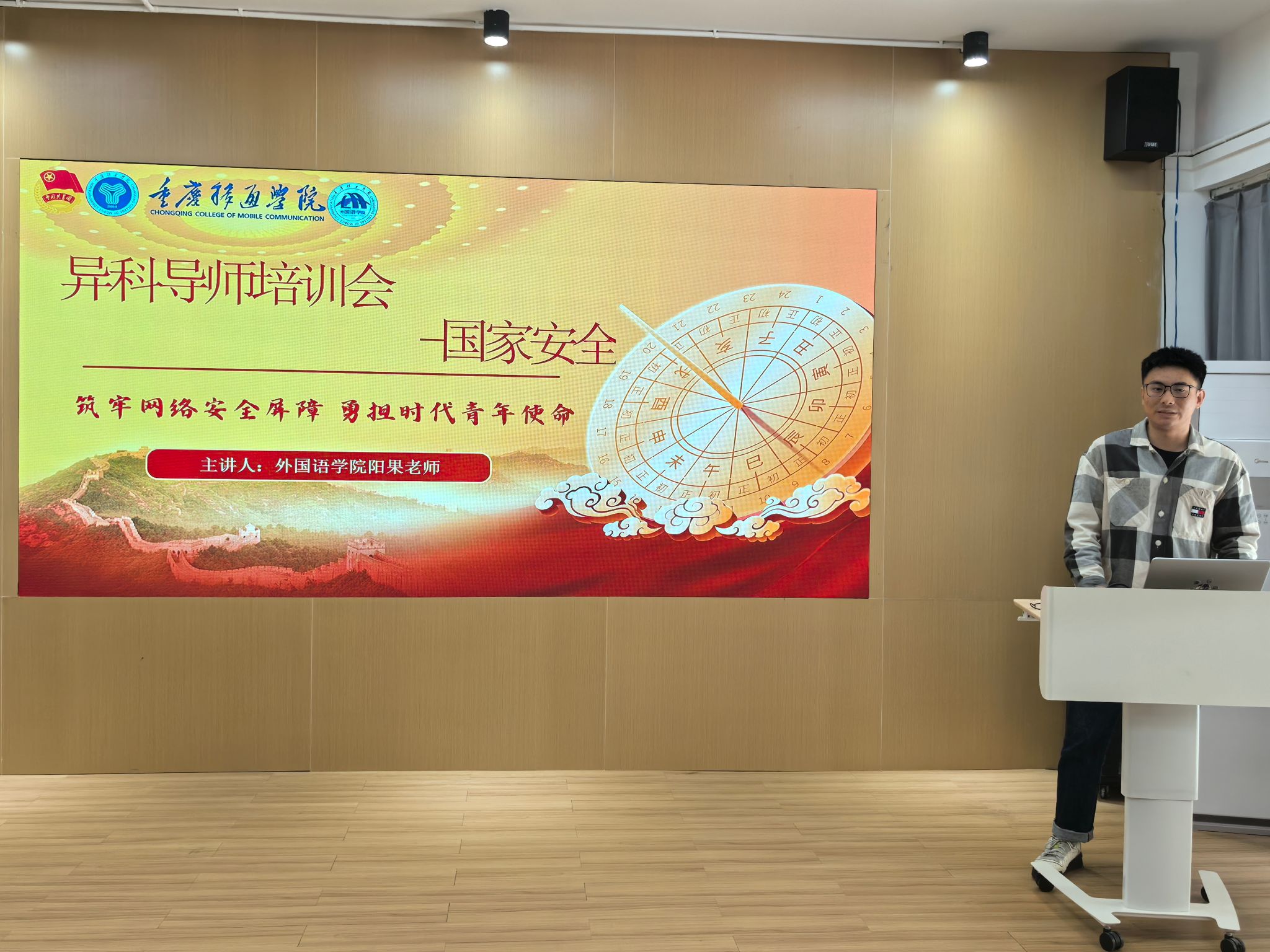 为积极响应国家安全日的号召,提升外国语学院异科导师的安全防范意识,4月16日下午2点,外国语学院在北山书院师生共话厅举办了一场别开生面的异科导师培训会。本次培训会聚焦国家安全主题,邀请学校保卫处罗倩老师、外国语学院辅导员阳果老师为异科导师们带来反诈及国家安全相关知识的精彩分享。