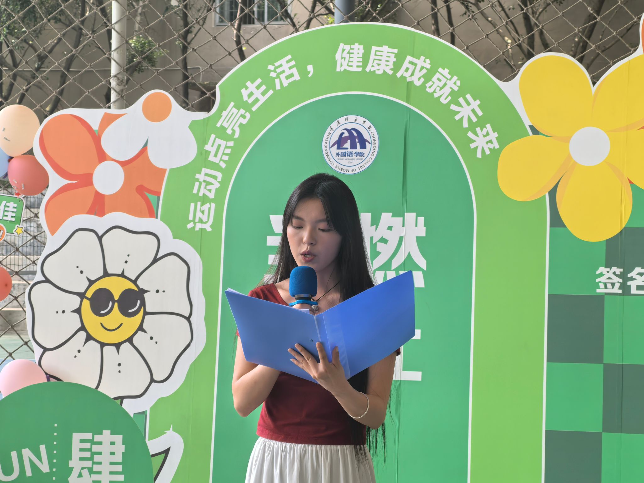 运动会在主持人热情洋溢的开场中拉开帷幕,主持人详细介绍了活动背景与目的,强调了学生与异科导师共同参与的重要意义。随后,学生代表周倩倩(校运动会女子1500米第一名、女子3000米第二名)发言,表达了对活动的期待。外国语学院舞蹈队带来活力四射的开场舞,点燃现场气氛,紧接着全体学生和异科导师在健身协会的带领下,共同参与团体操,展现出积极向上的精神风貌。