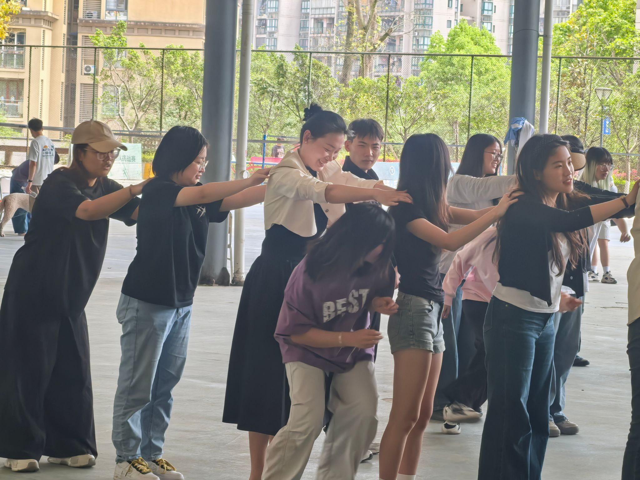 趣味运动项目是本次活动的核心环节。“撕名牌大作战”中,学生与异科导师分组对抗,大家灵活躲闪、巧妙进攻,现场欢呼声不断。在“龙环穿梭大挑战”里,参与者手拉手围成圆环,穿梭者小心翼翼地在圈内穿梭,紧张刺激的氛围让每个人都全神贯注。“随机应变”考验着大家的反应能力,师生们在欢笑中相互配合。“小鸡变形计”则充满趣味,参与者通过猜拳一步步进化,现场一片欢声笑语。