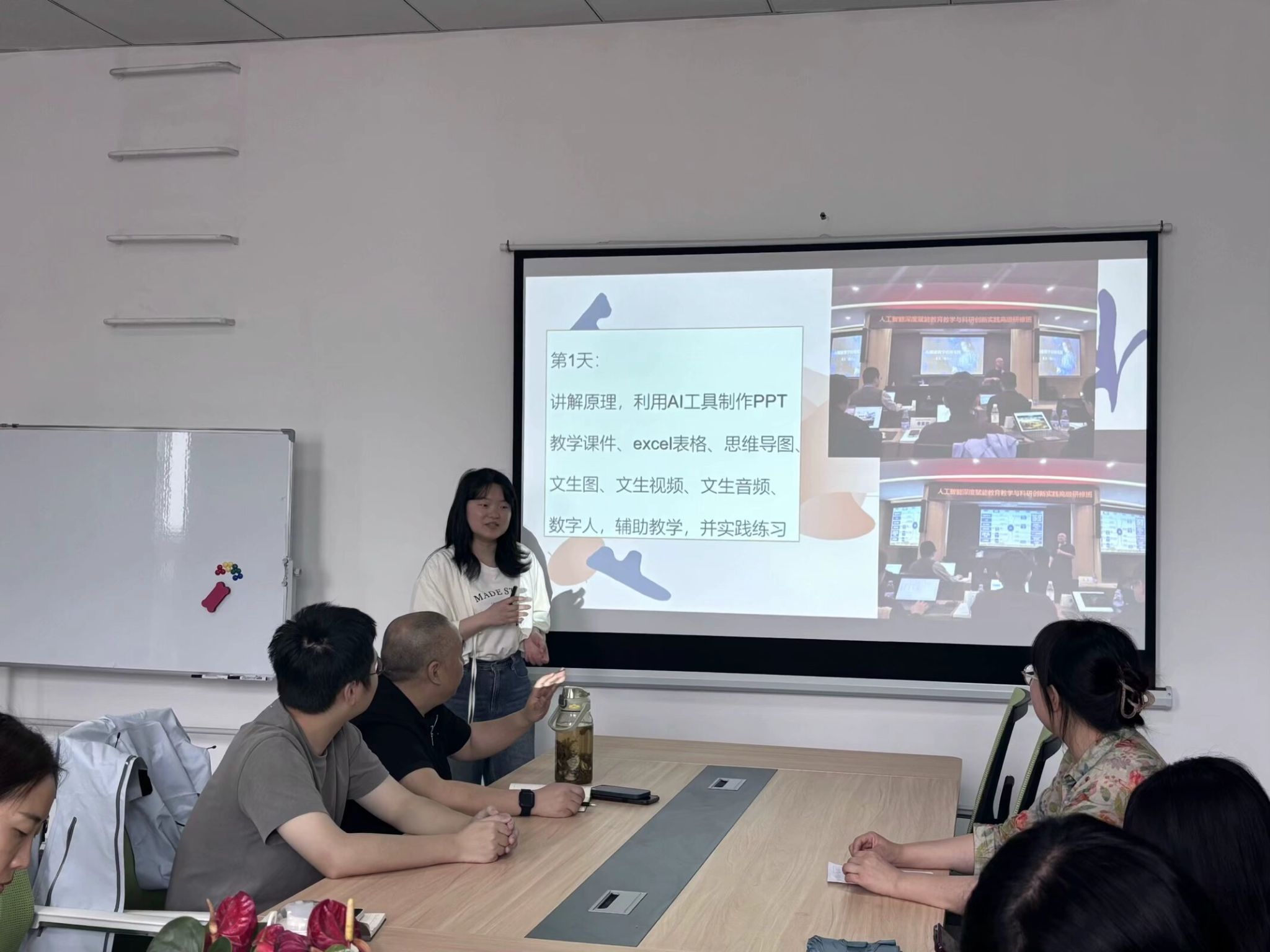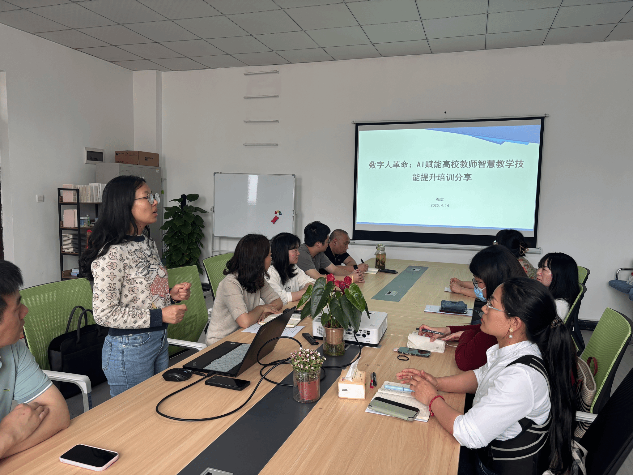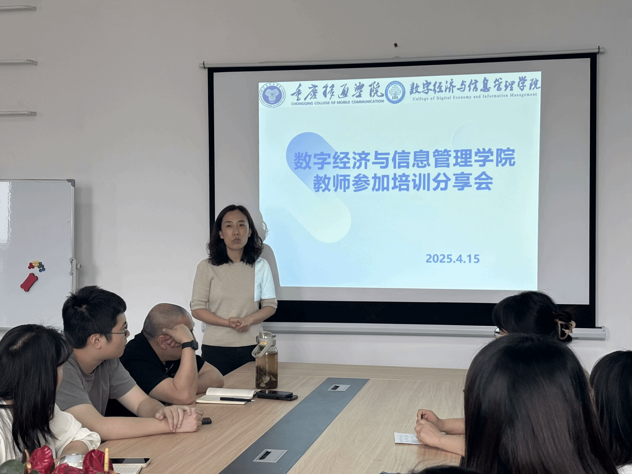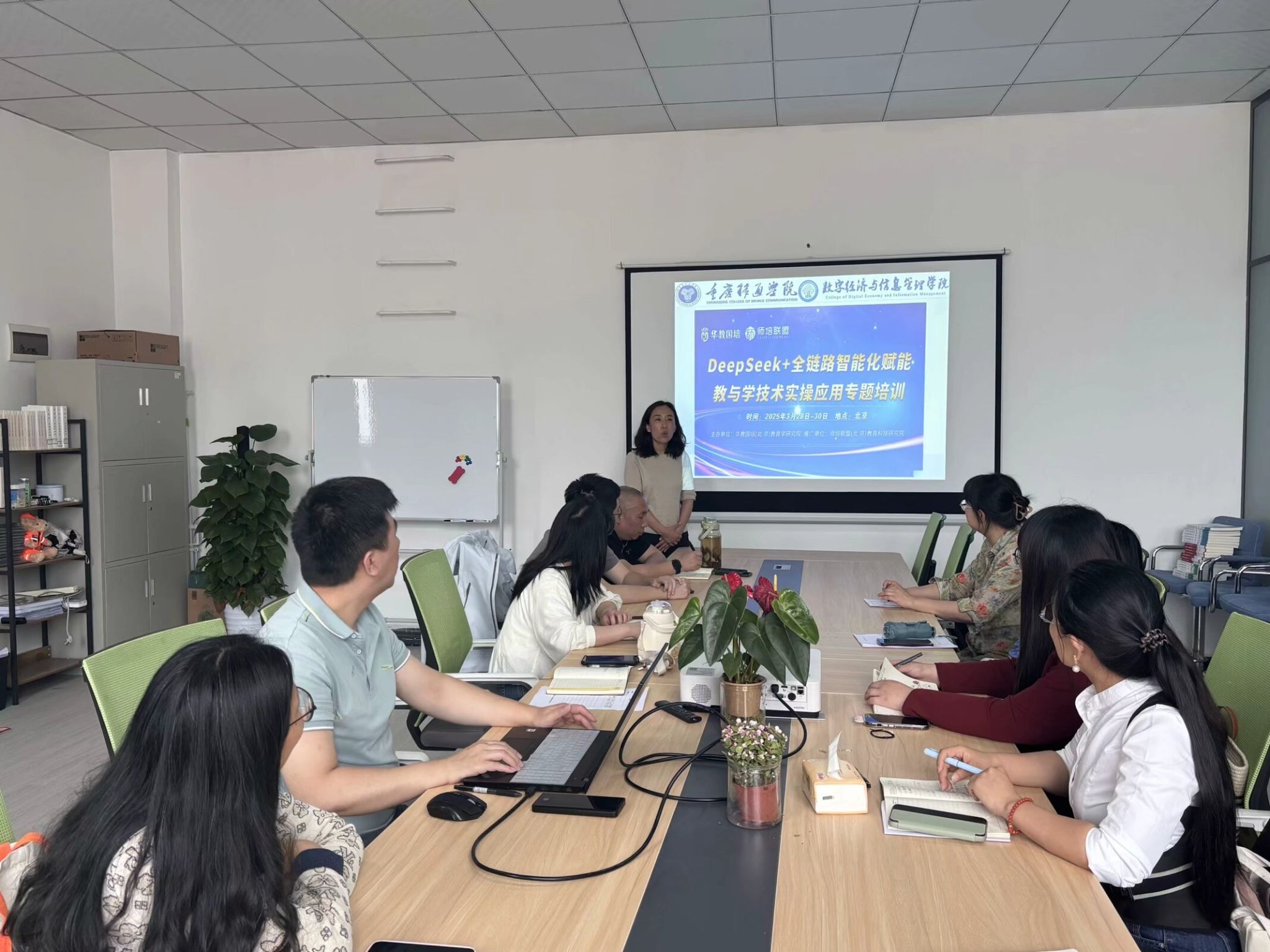 为深化人工智能技术与教育教学及科研的深度融合,推动教师智能教育能力升级,2025年4月14日在仁者楼507,由数字经济与信息管理学院周梦娇老师主持,学院四位教师对她们在3月下旬参加关于AI赋能教育教学的专题研究与培训活动进行分享,精准对接前沿领域,全面探索智能时代教育创新路径。